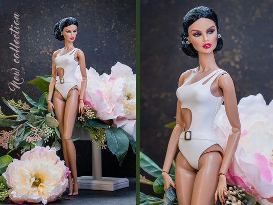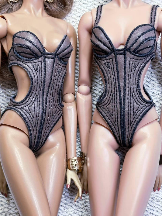 Body Corsage swimsuit made of elastic imitation leather and embroidery pattern for Integrity Toys Fashion royalty dolls
