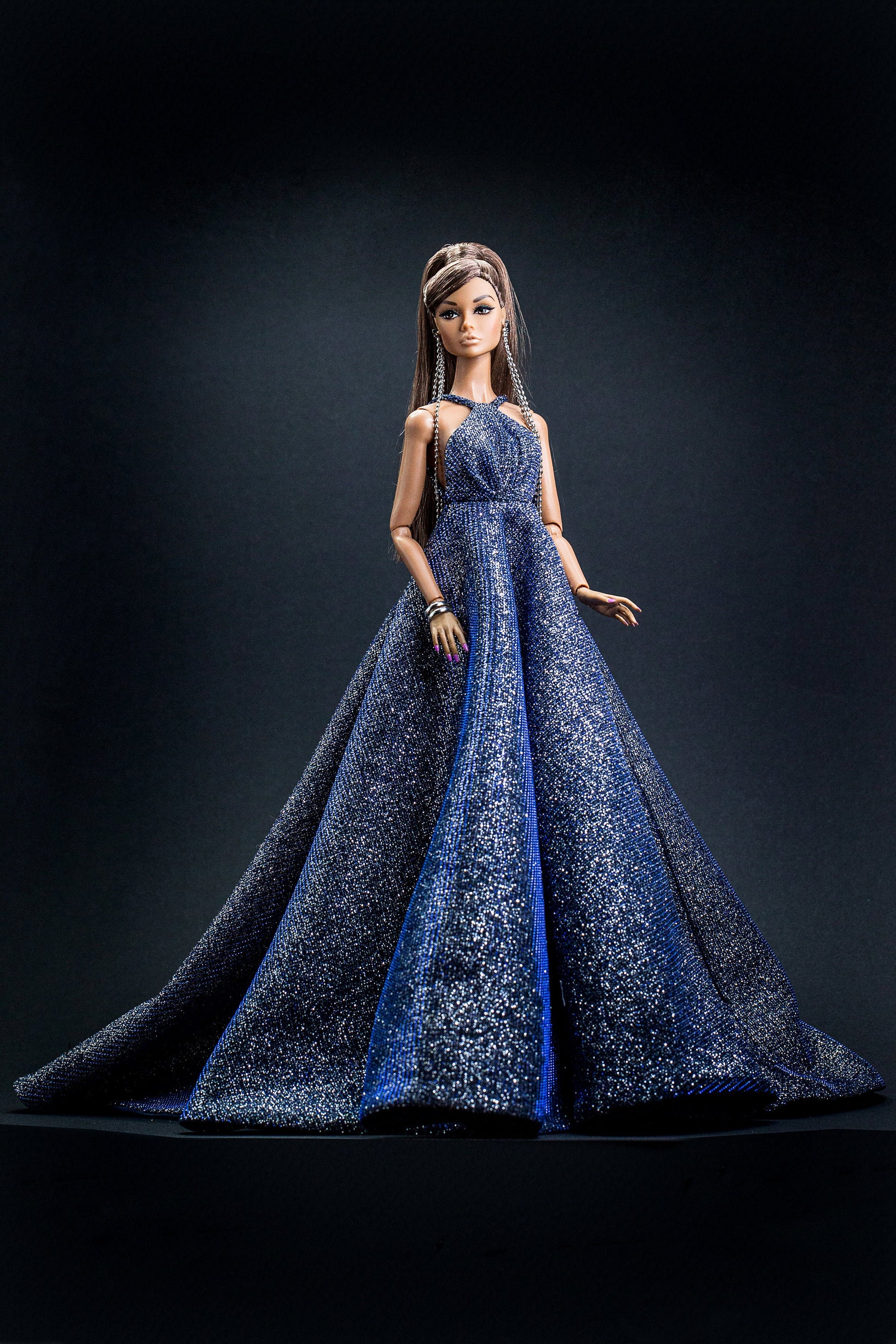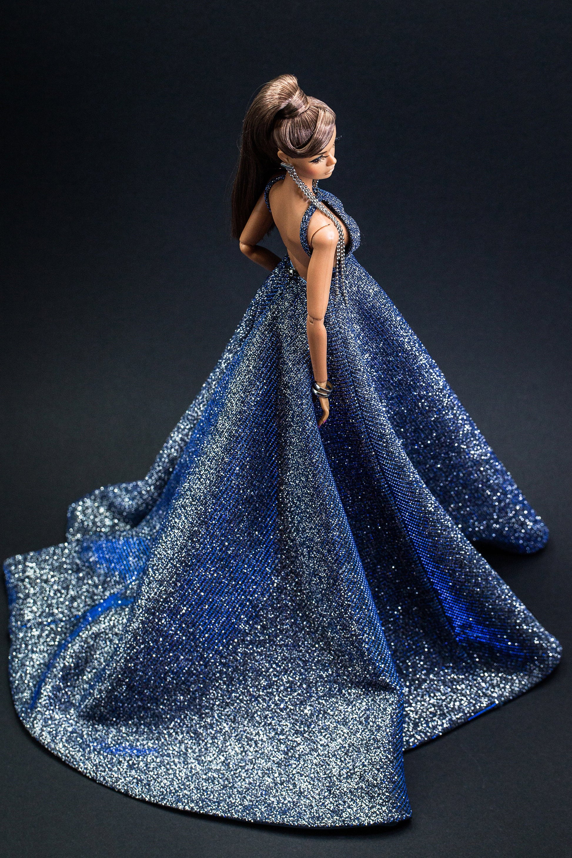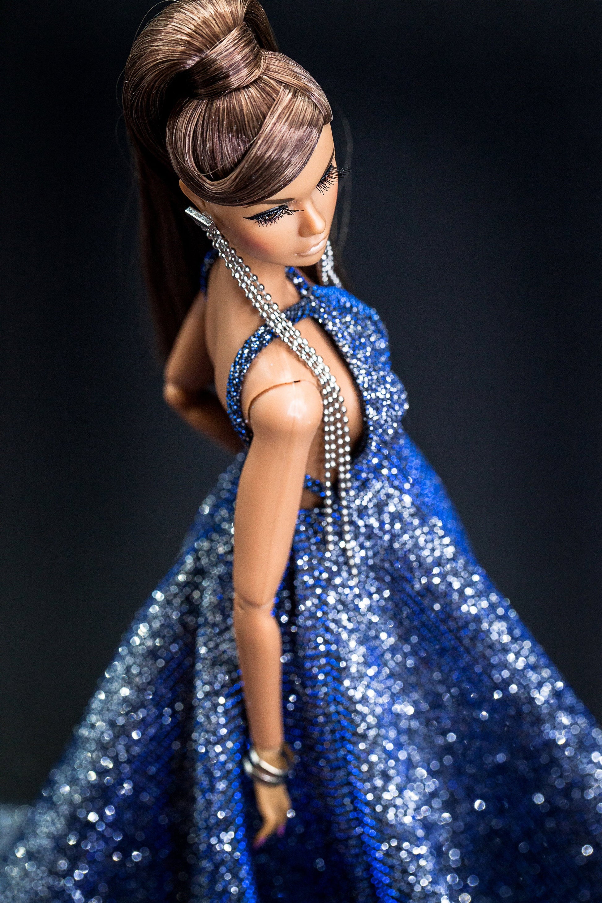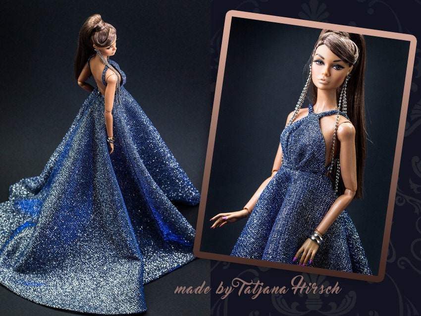 Blaues Glitzer Kleid für Integrity toys Fashion Royalty Nu Face Poppy Parker dolls.