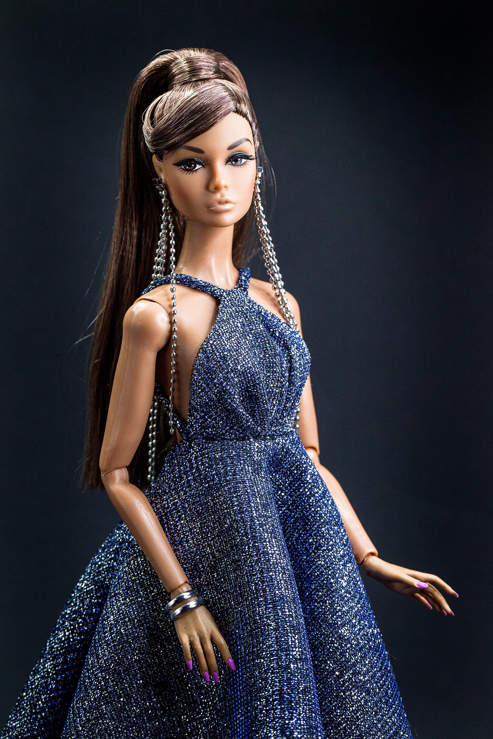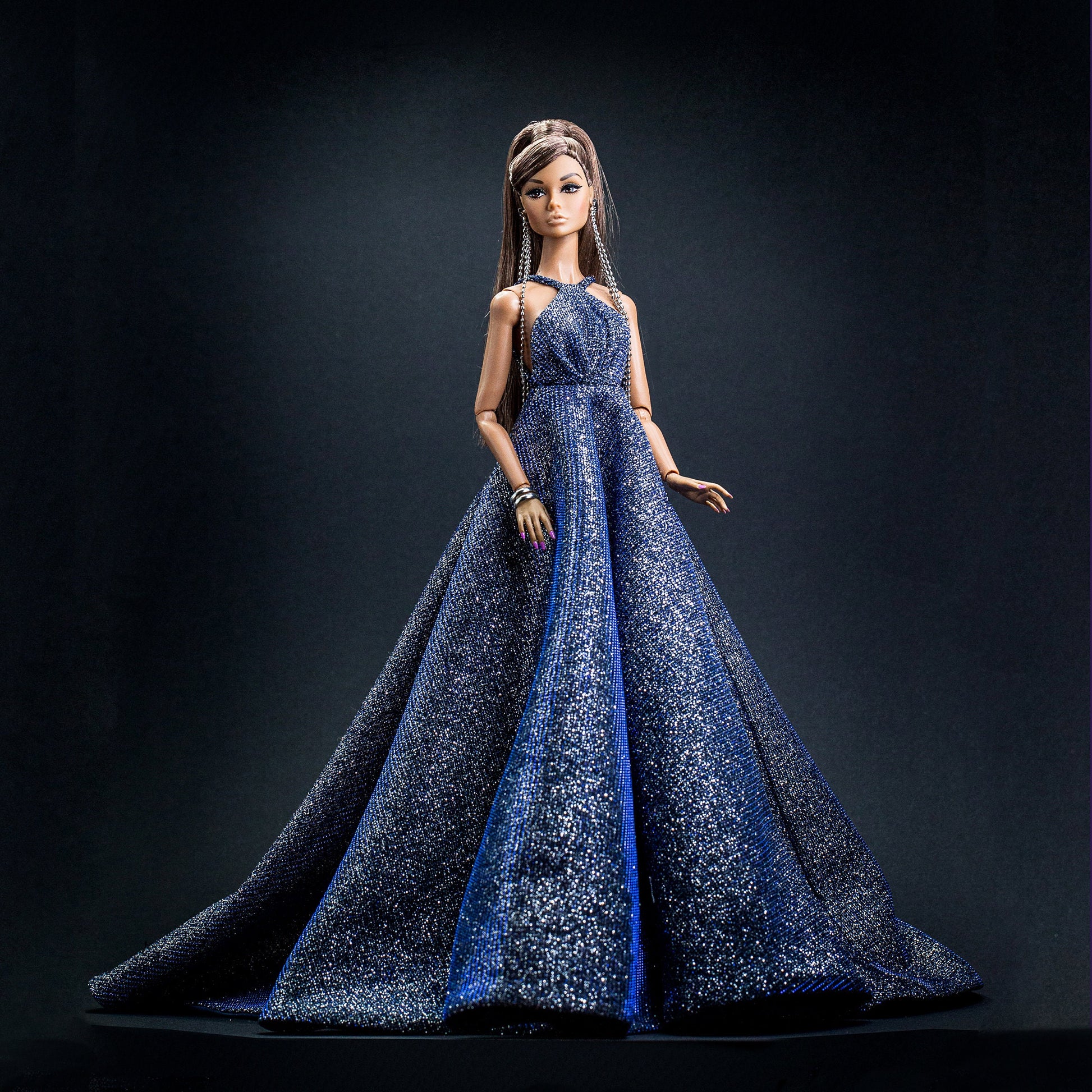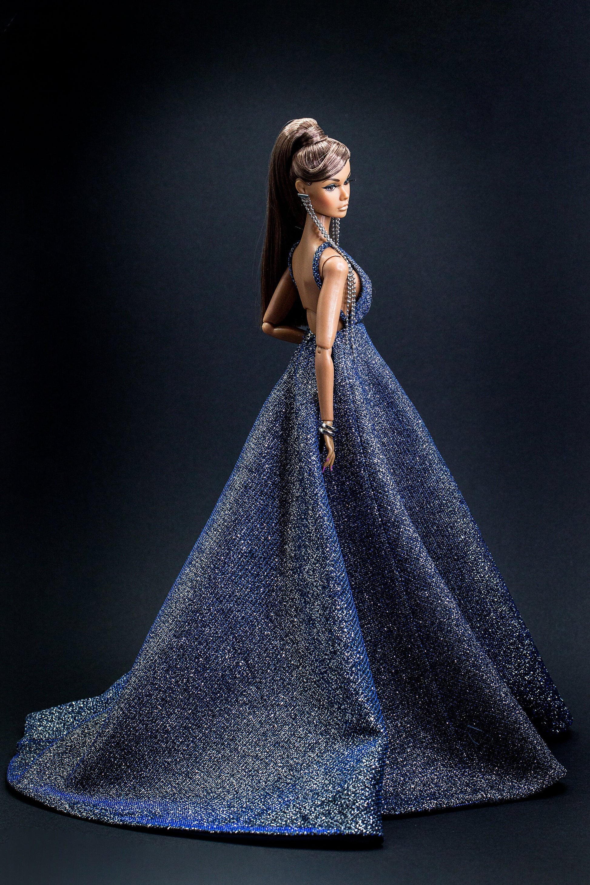 Blaues Glitzer Kleid für Integrity toys Fashion Royalty Nu Face Poppy Parker dolls.