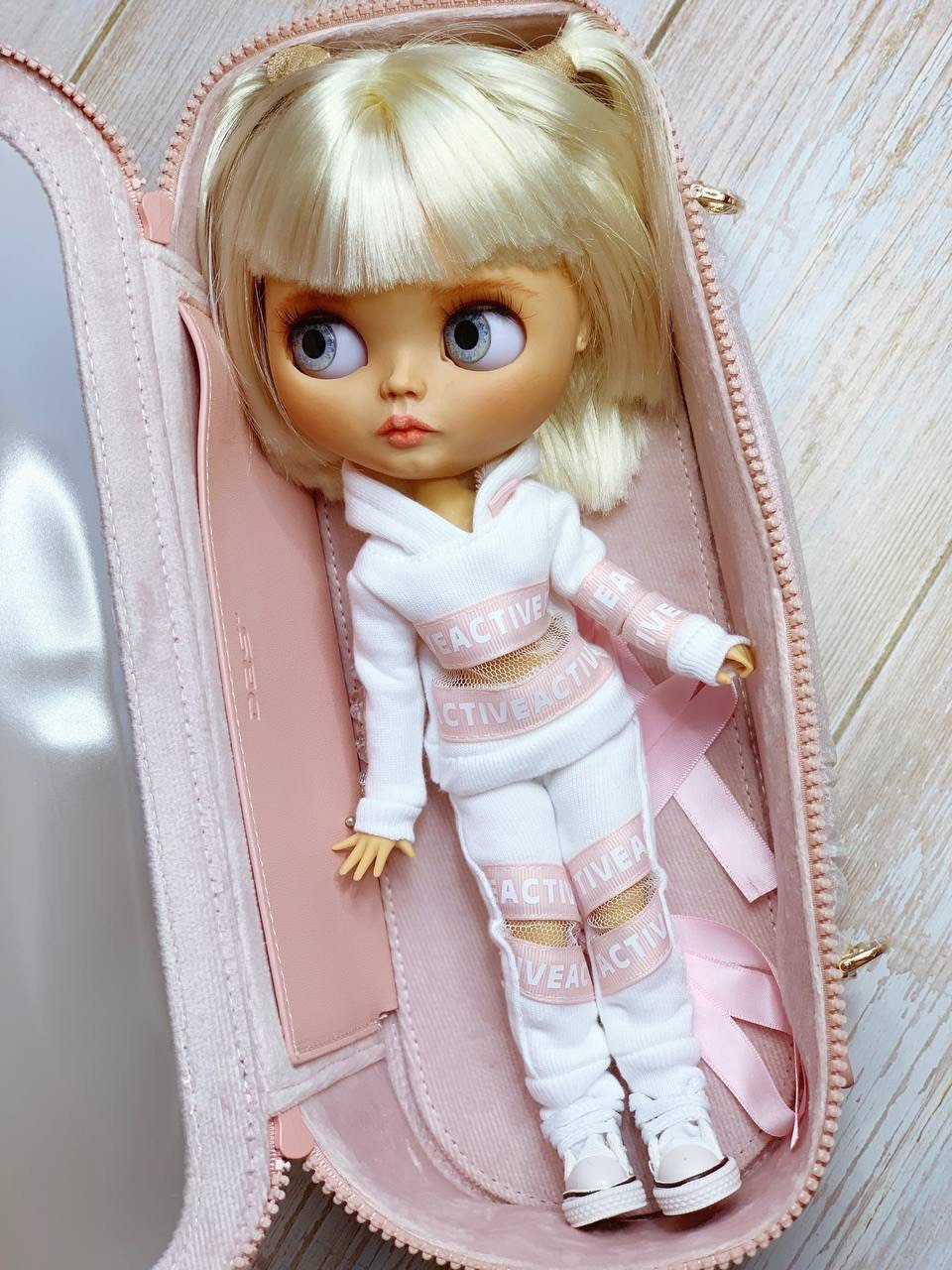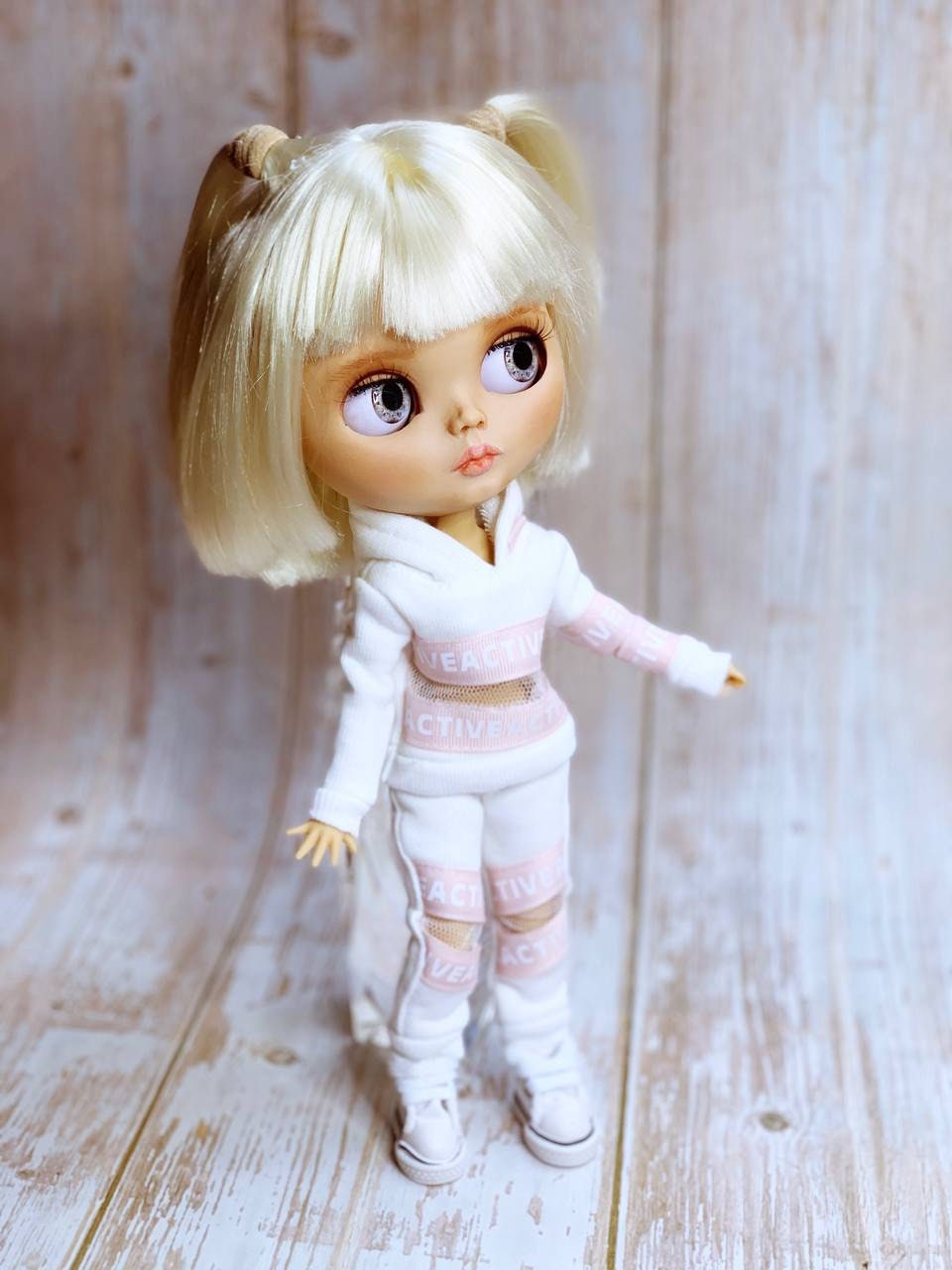 Ein unikates Outfit in Farbe weiß -rosé für Blythe Puppe ( passend auch für Pulipp und ähnliche Puppenkörper).