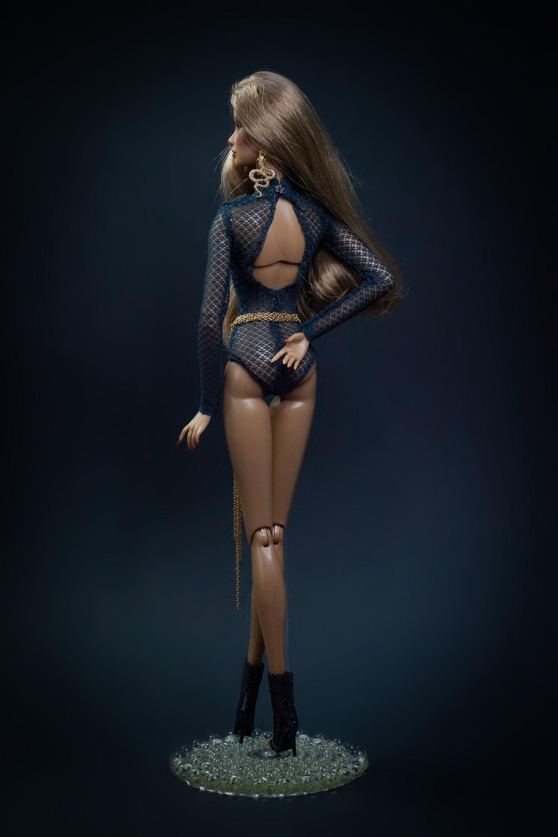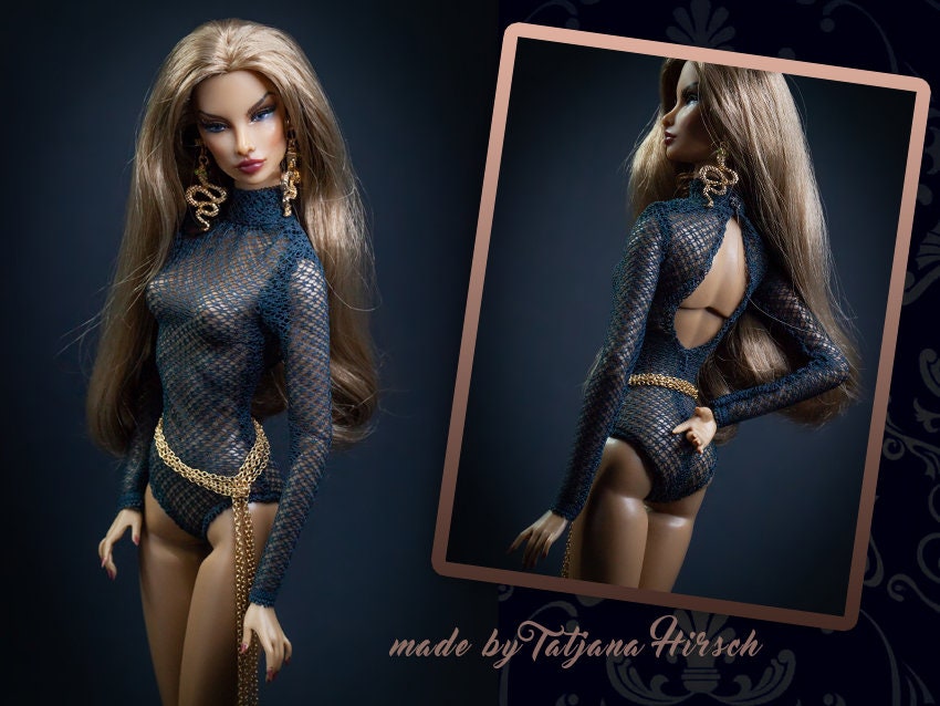 Der Body (Bluse) aus Netz in anthrazit für Poppy Parker, Fashion Royalty, Nu Face Integrity Toys Puppen.
