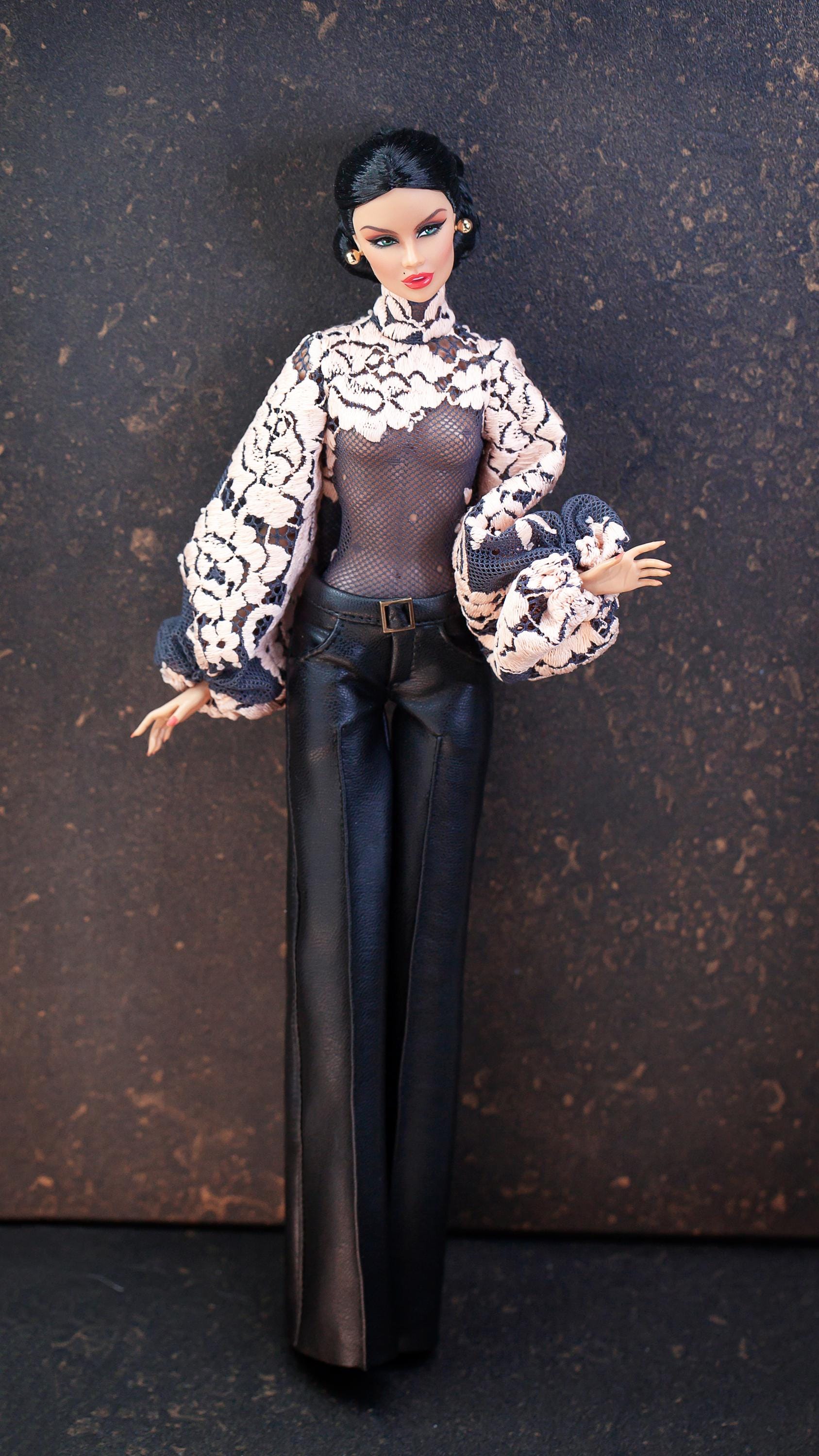 Diese wunderschöne Body-Bluse mit aufwendig gearbeiteten weiten Ballonärmeln, einem hohen Kragen und filigraner Spitze ist ein echter Hingucker für Ihre Fashion Royalty, Nu Face, Poppy Parker und andere Integrity Toys Puppen.
