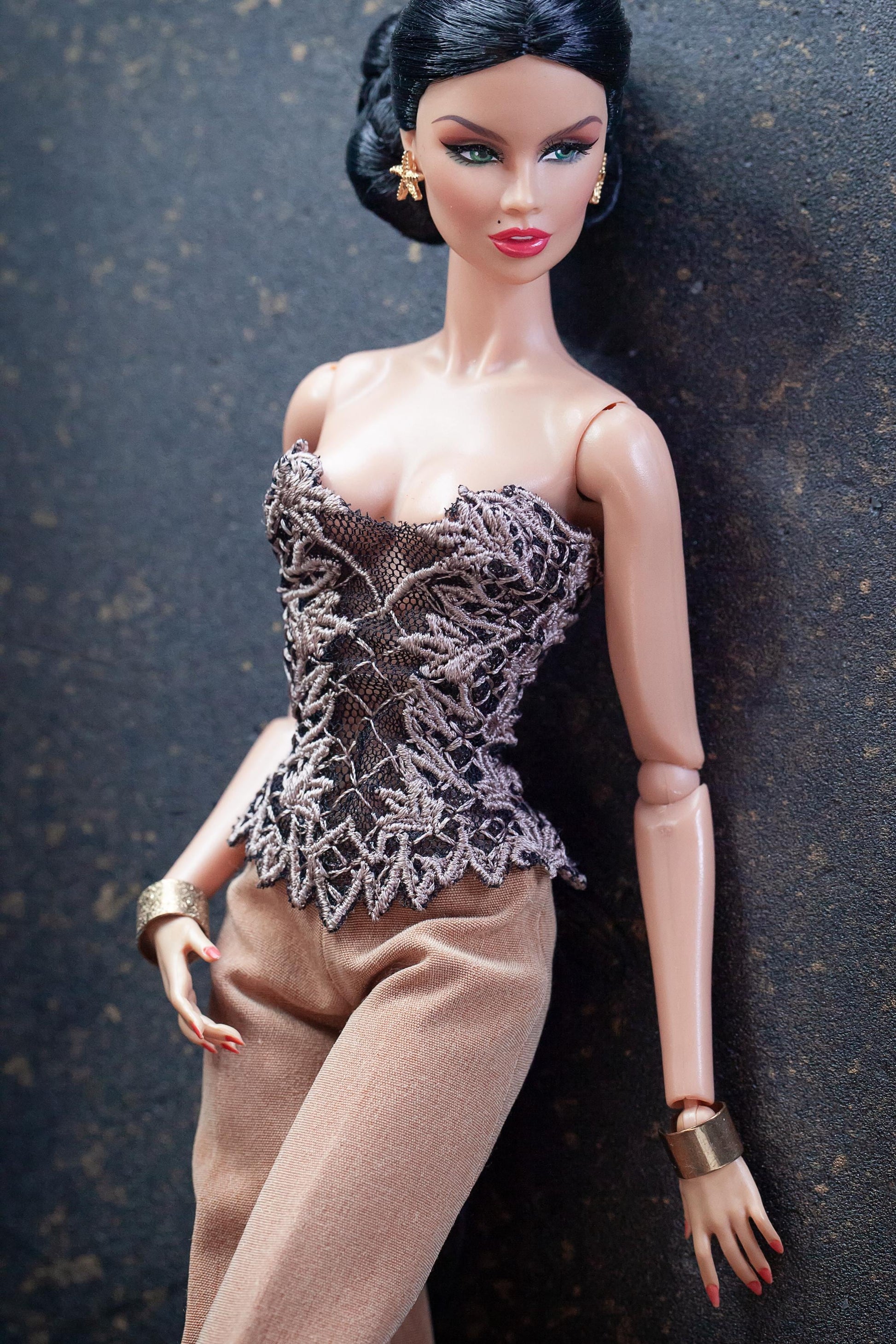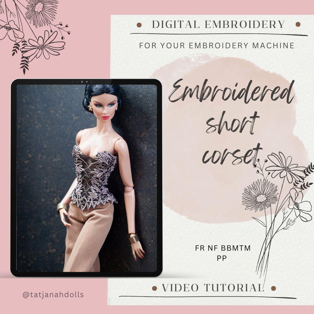 Digital Embroidery /embroidered lace short corset for Fashion Royalty, Nu Face, Poppy Parker and BB MTM dolls. + Video tutorial.
