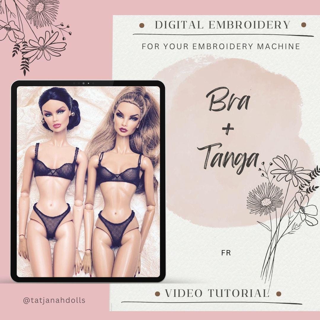 Digital Embroidery /embroidered lingerie bra & tanga for Fashion Royalty dolls. + Video tutorial.
