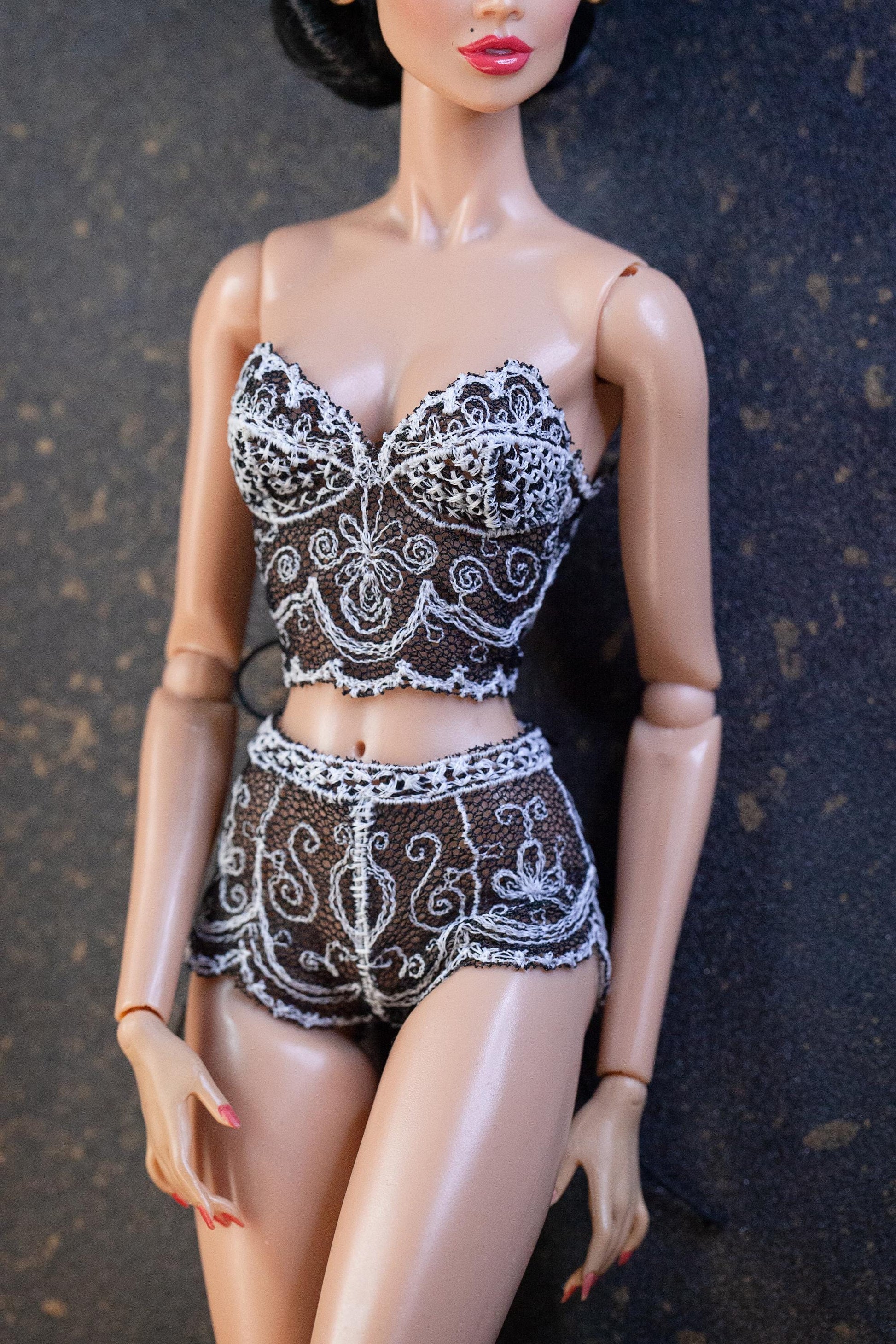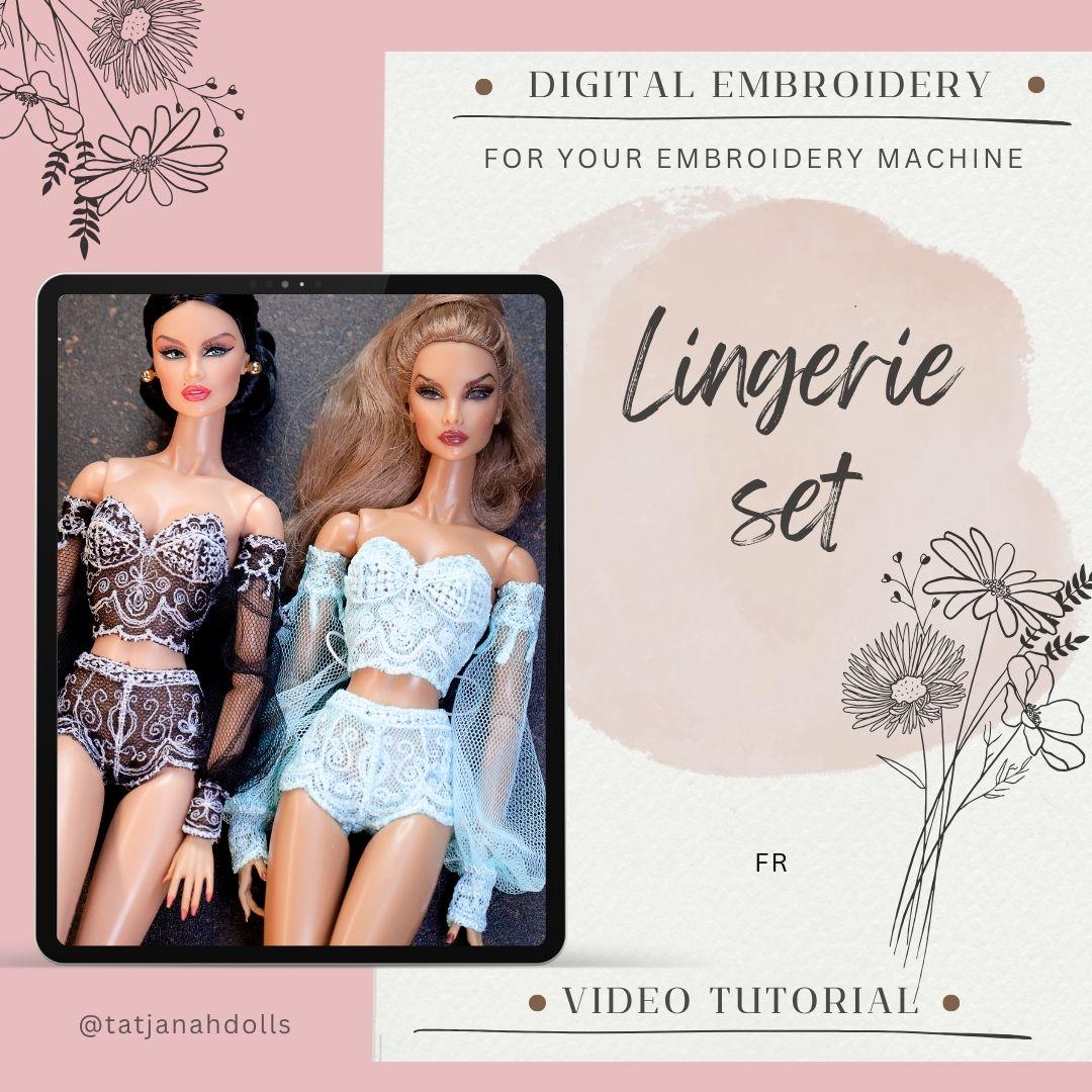 Digital Embroidery /embroidered lingerie set for Fashion Royalty dolls. With sleeves pattern + TUTORIAL