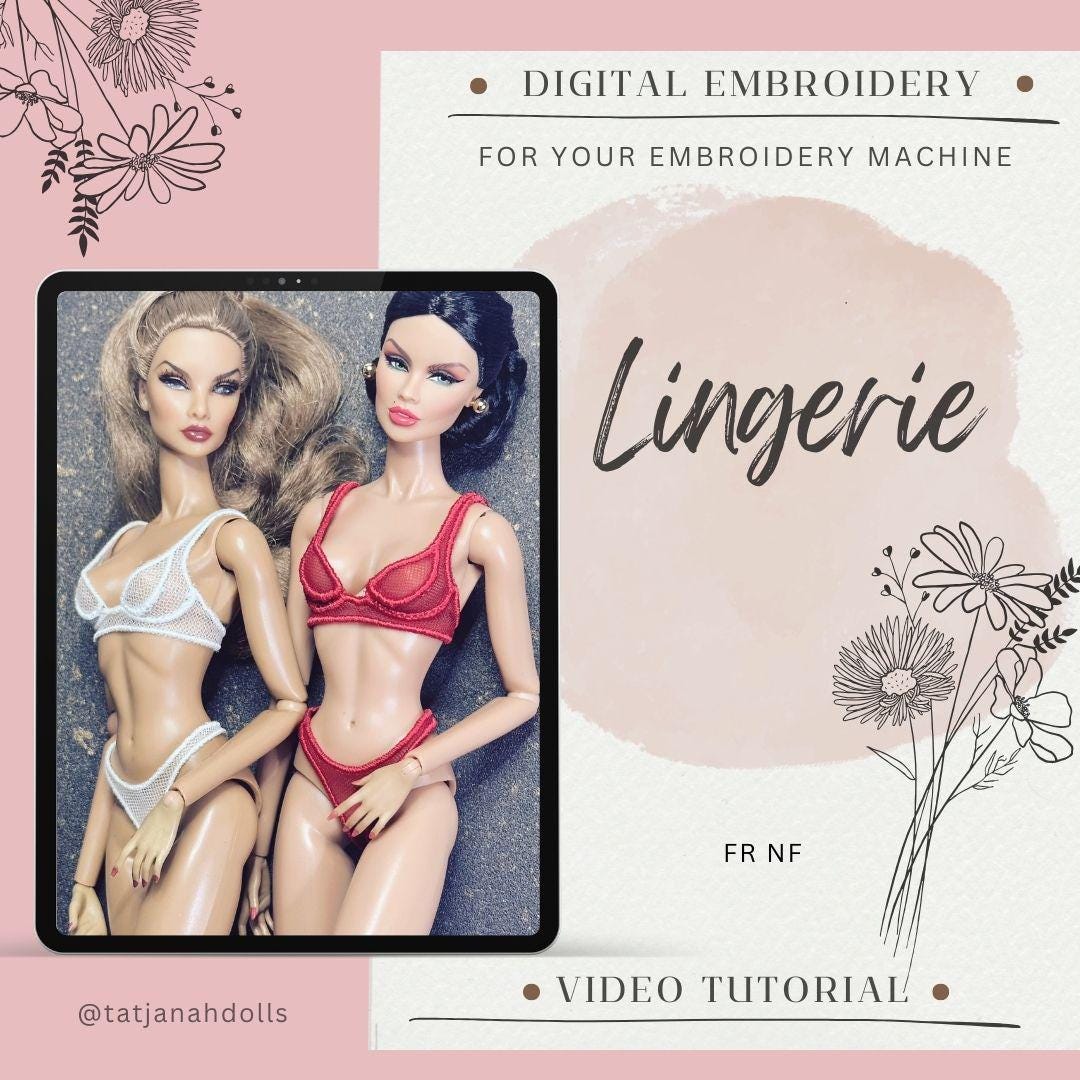 🖤 Digital Embroidery & Sewing Pattern – Lingerie for Fashion Royalty & Nu Face Dolls 🖤