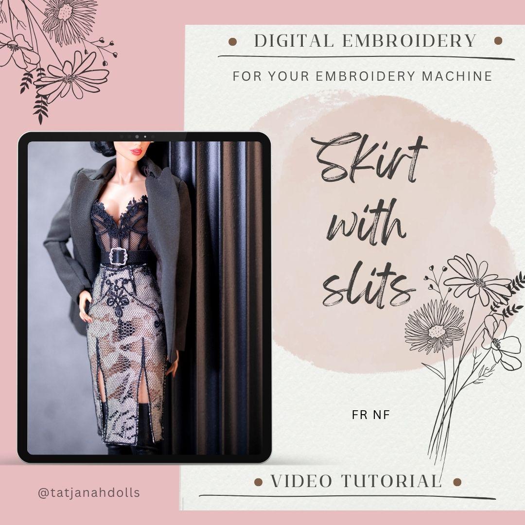 🖤 Digital Embroidery & Sewing Pattern – skirt with slits for Fashion Royalty & Nu Face Dolls 🖤