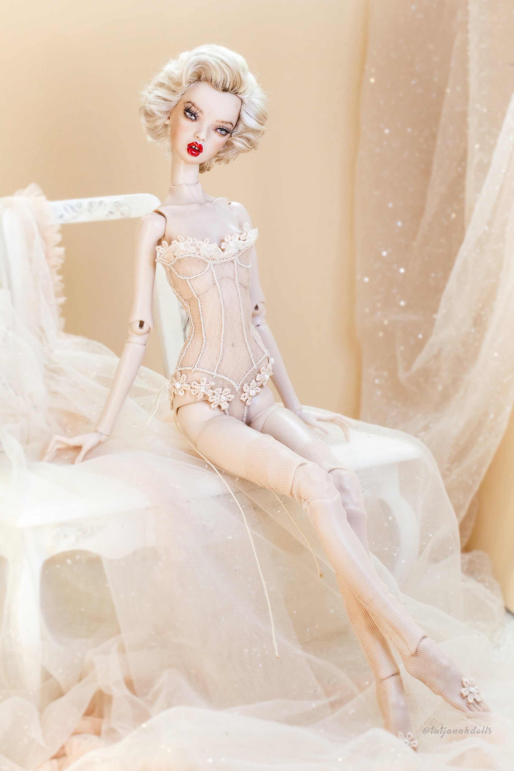 💎 Edle Dessous, Body für Popovy Sisters and Recast Puppen Ein elegantes und detailverliebtes Lingerie-Set  im Maßstab 1/4. Jedes Set besteht aus einer figurbetonten Body-Corsage, Morgenmantel und einem Paar feiner Strümpfe, genau wie auf den Fotos getragen. ✨ Die Rückseite des Bodys ist mit Schnürung gestaltet – ein echter Hingucker für jede Modepuppe!