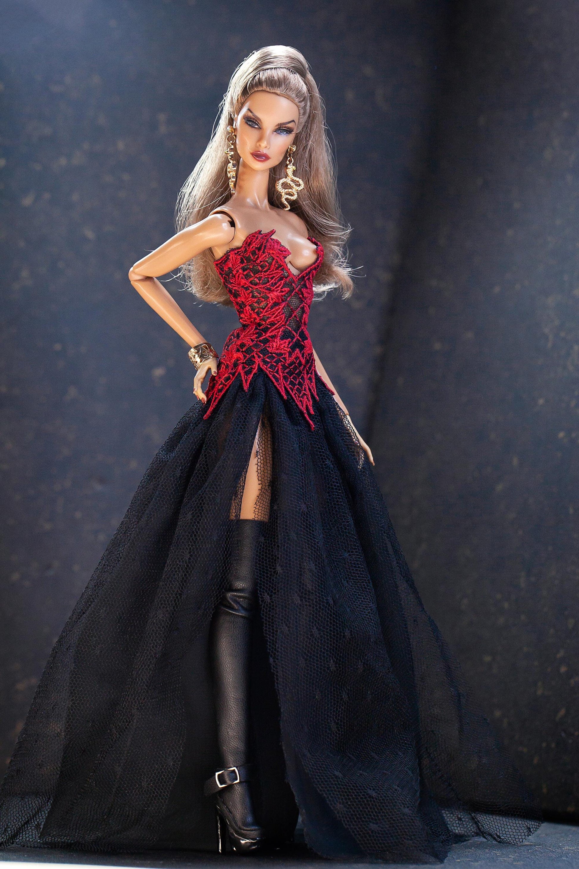 Diese kunstvoll bestickte Corsage ist ein echter Hingucker für deine 1:6 Modepuppen. Mit aufwendigem Stickmuster und markanter Rückenschnürung passt sie perfekt zu Fashion Royalty Dolls.