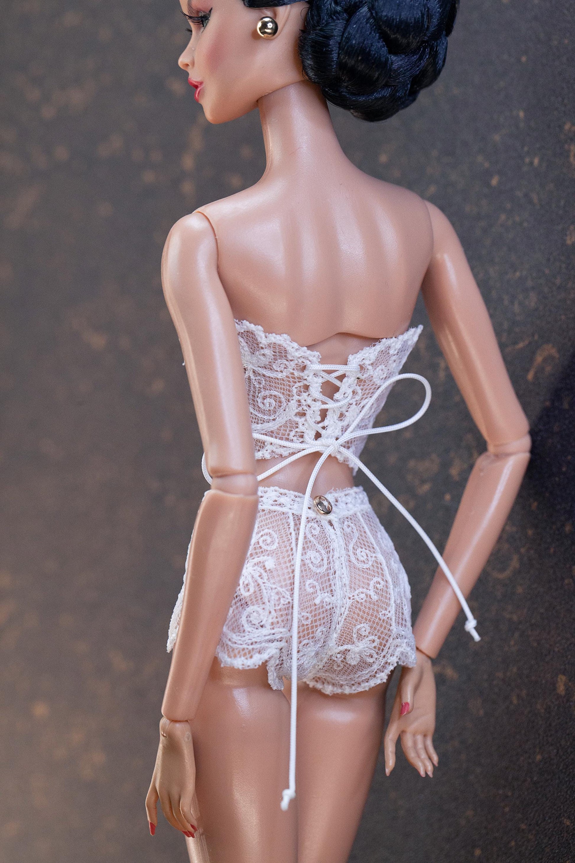 Ein exklusives und hochwertiges Lingerie-Set, speziell entworfen für Fashion Royalty und Poppy Parker Puppen (Integrity Toys, 12 Zoll). Dieses elegante Ensemble besteht aus fein bestickter Spitze und beinhaltet: