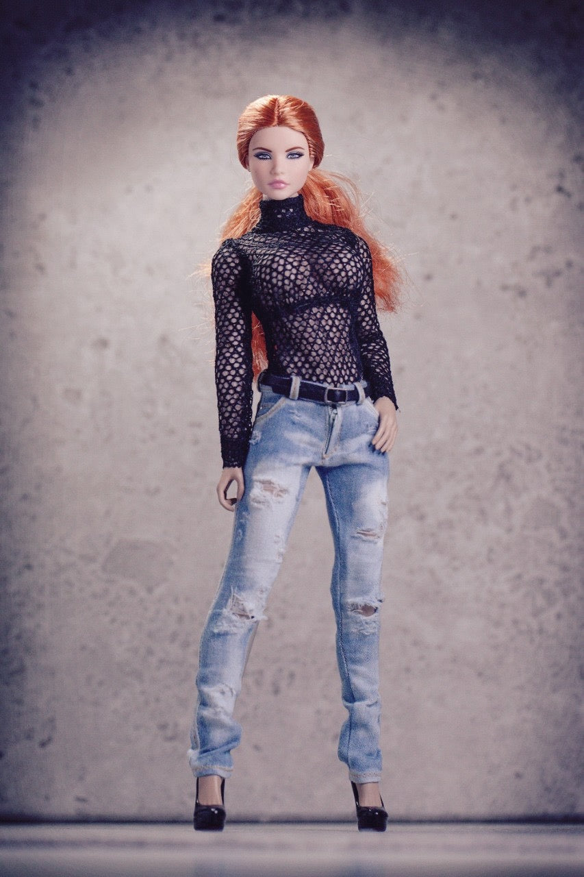 Transparenter Netz-Body, Jeans und Kunstleder-Bustier für Phicen TBLeague Puppen (1/6 Maßstab)