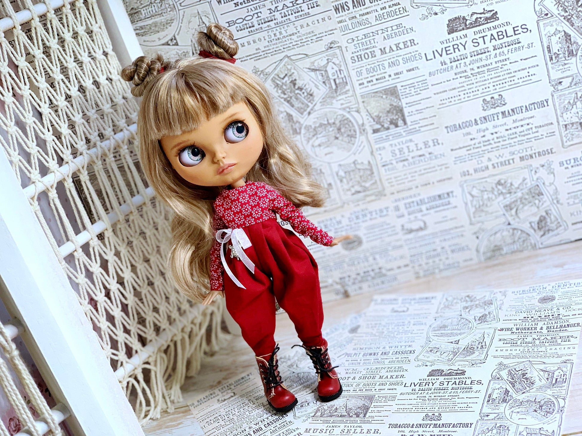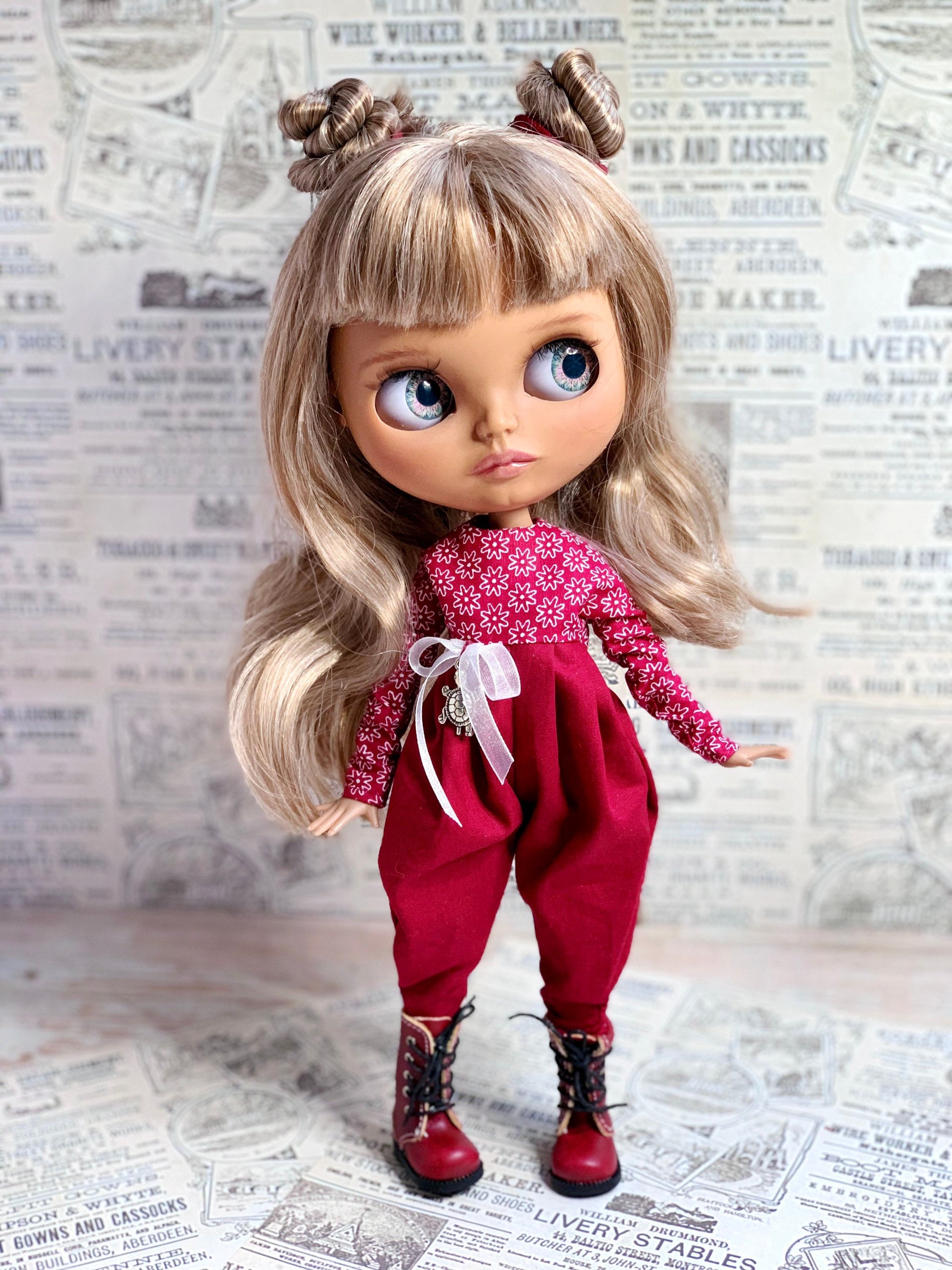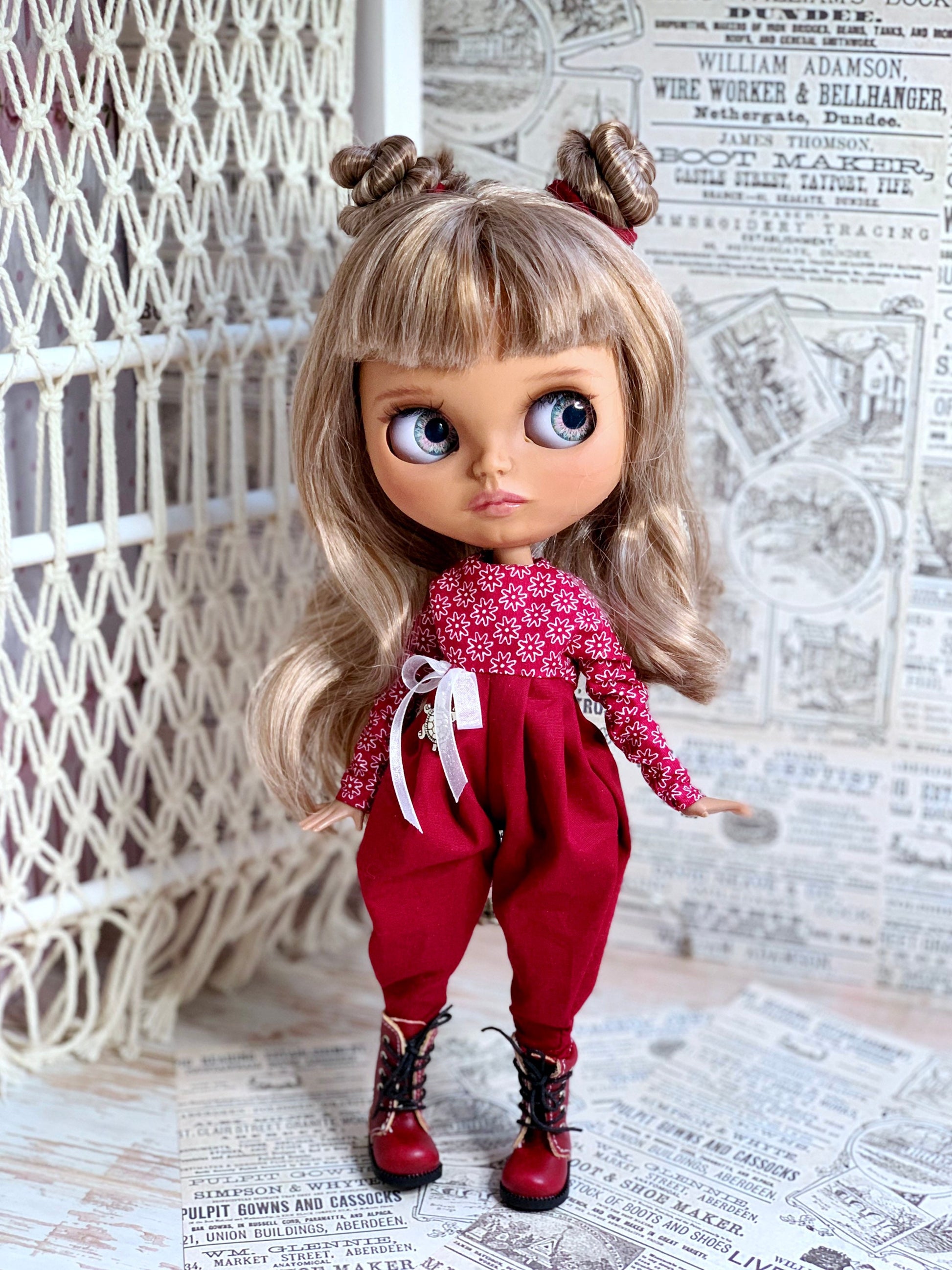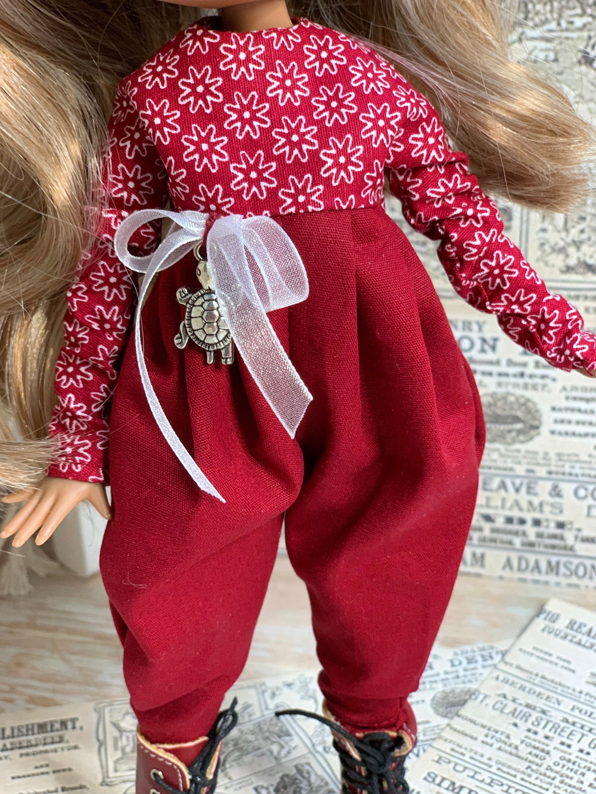 Jumpsuit , Overall rot für Blythe Puppe 30 cm. Outfit für Dolls weinrot.