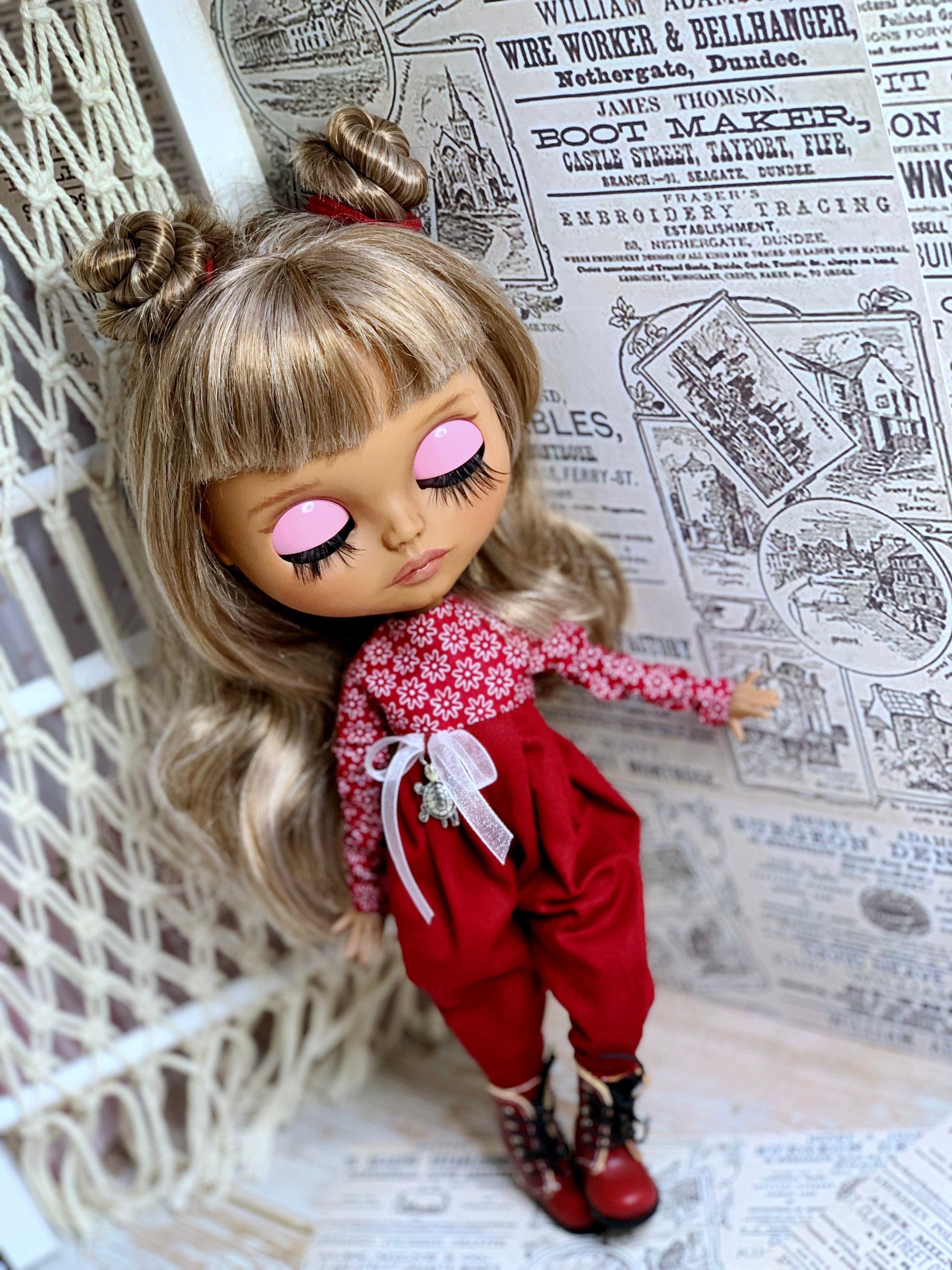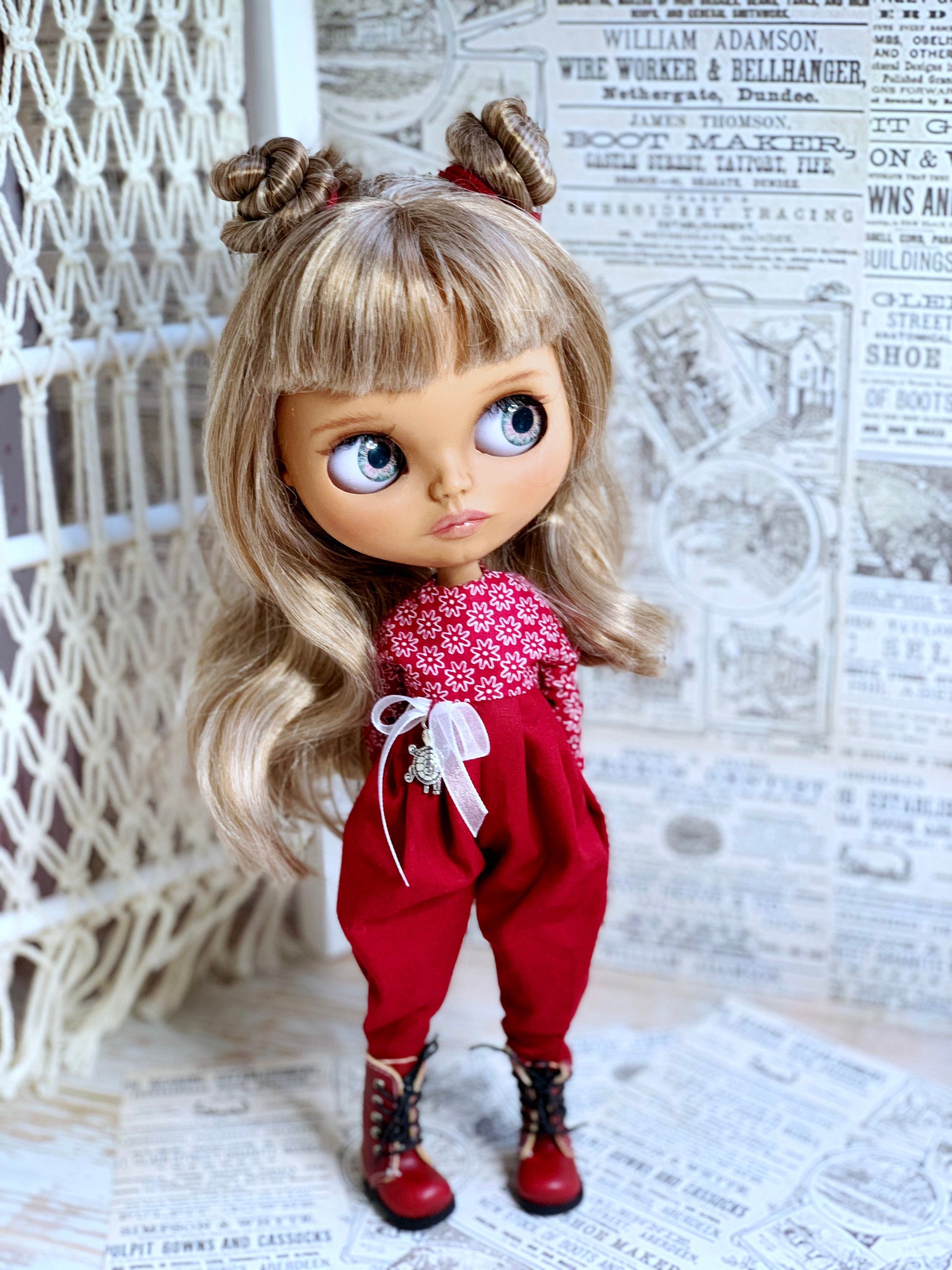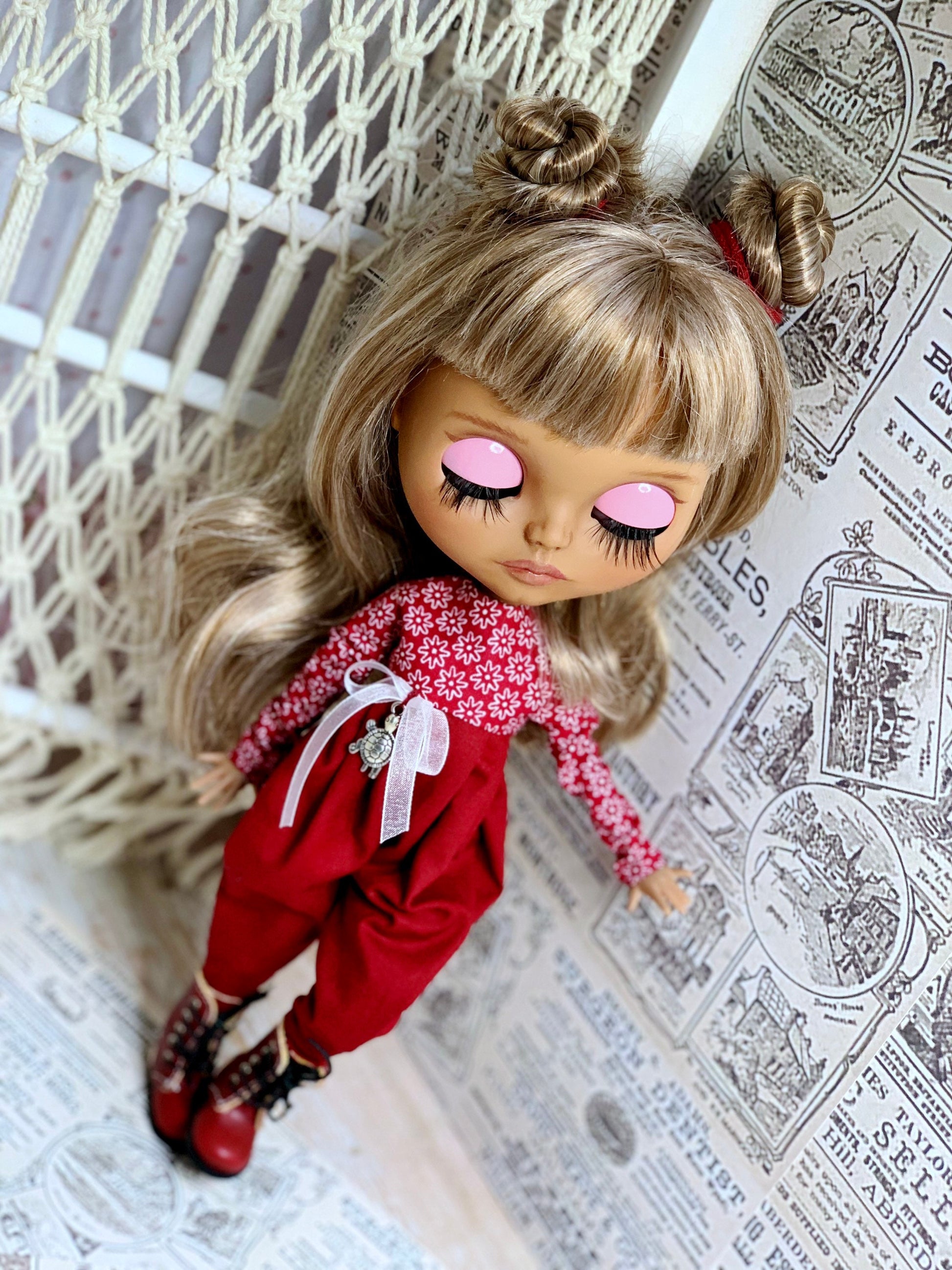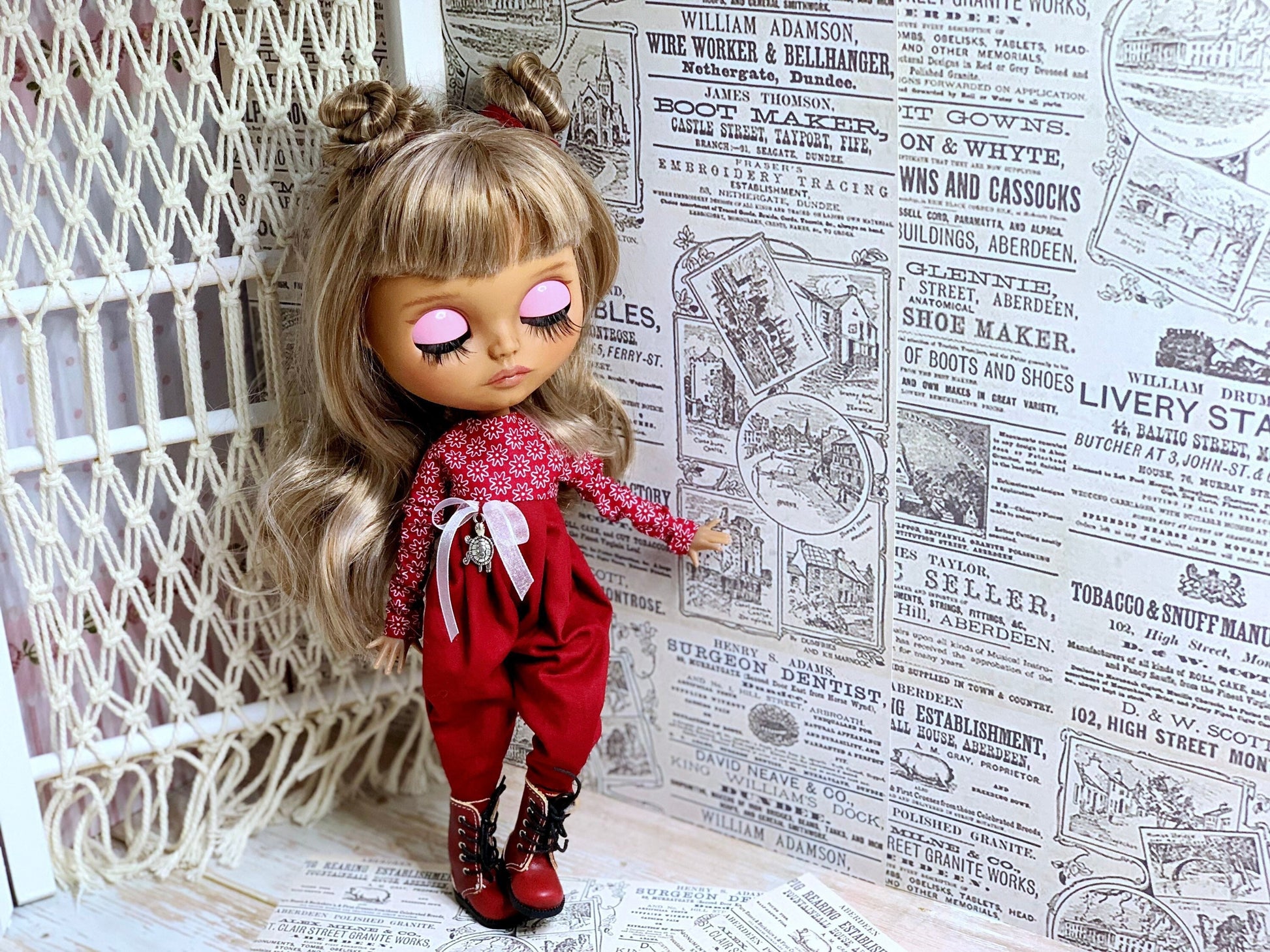 Jumpsuit , Overall rot für Blythe Puppe 30 cm. Outfit für Dolls weinrot.