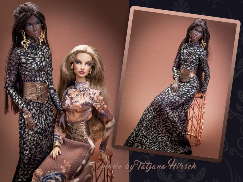 Langes Kleid mit Schlangenmuster für Integrity Toys Poppy Parker Nu Face Fashion Royalty 12 zoll dolls