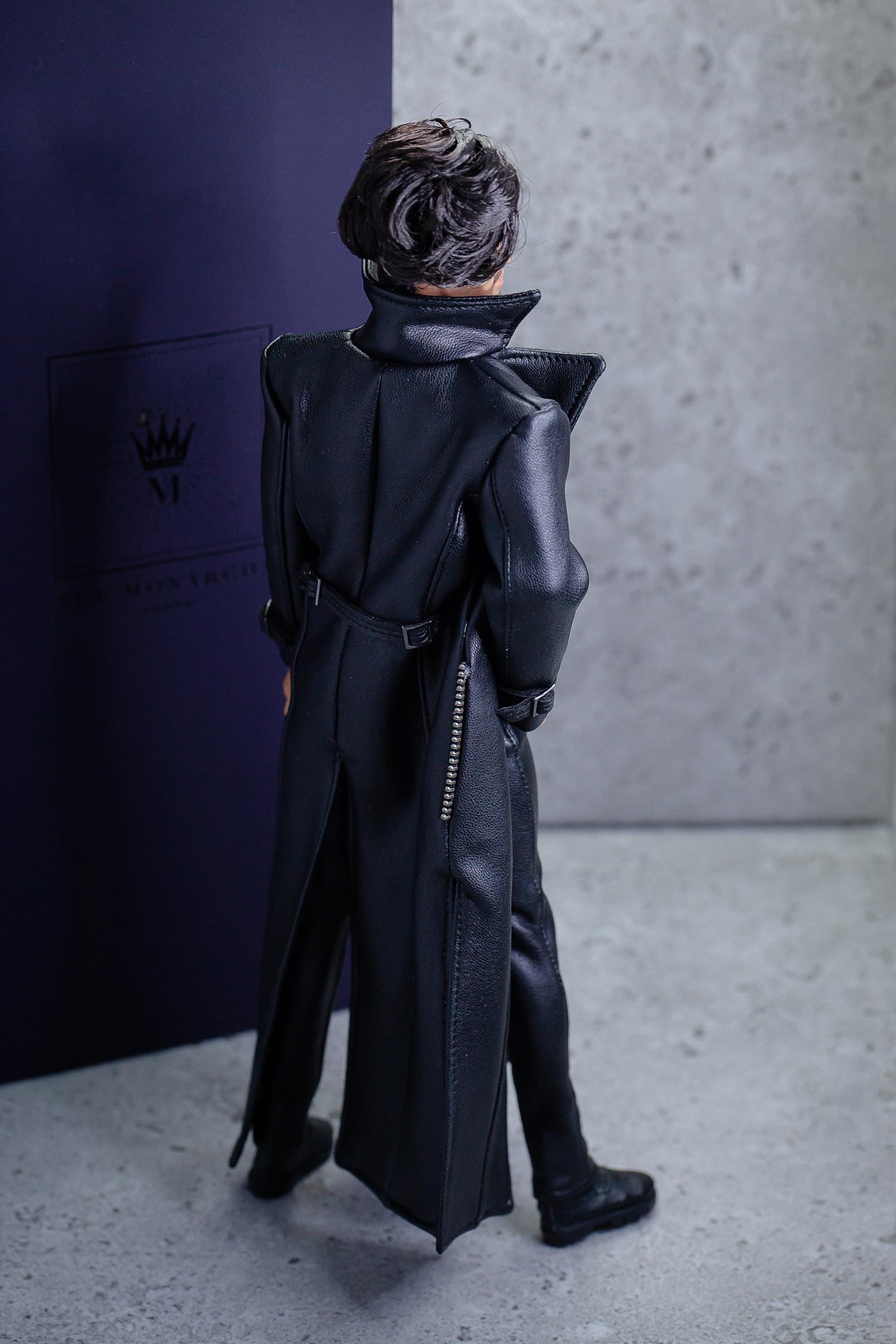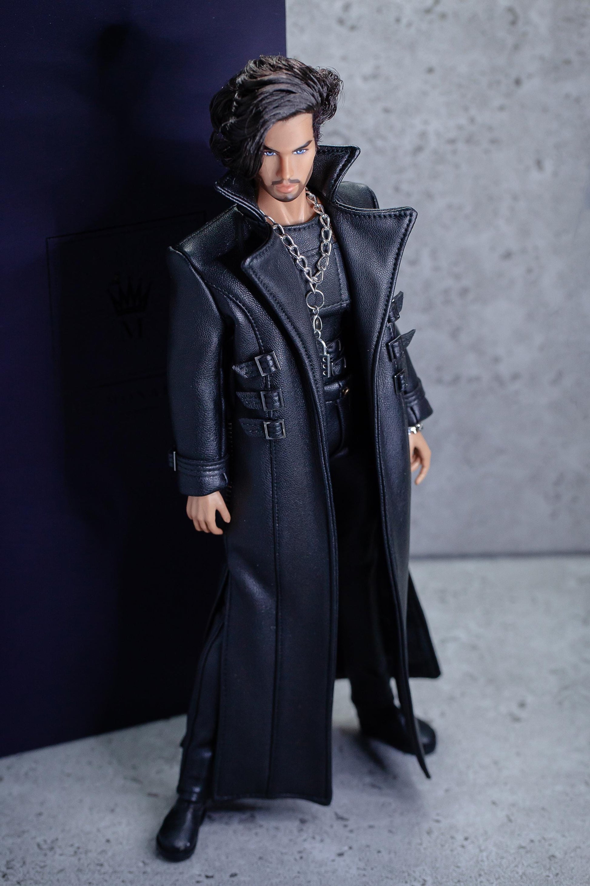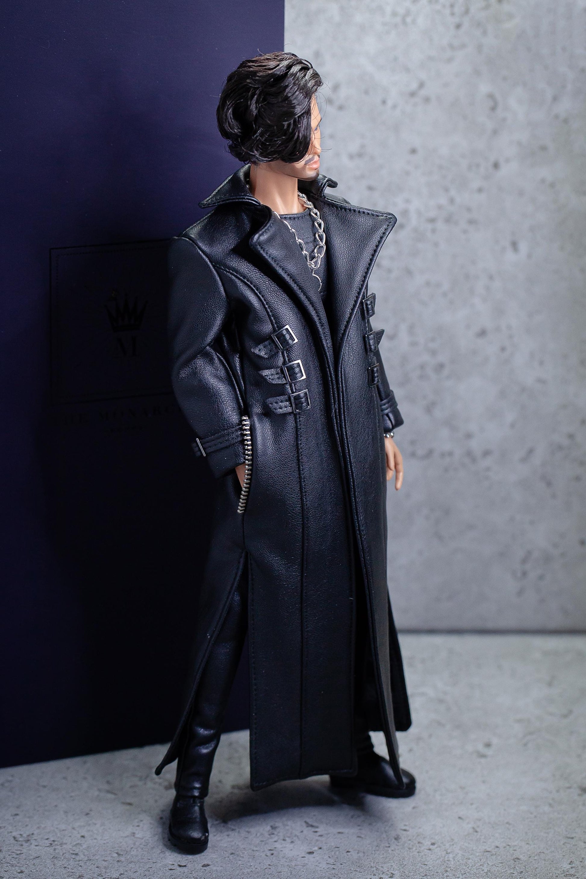 Leder Outfit für FR Homme Integrity toys fashion royalty male doll. Long trench coat.