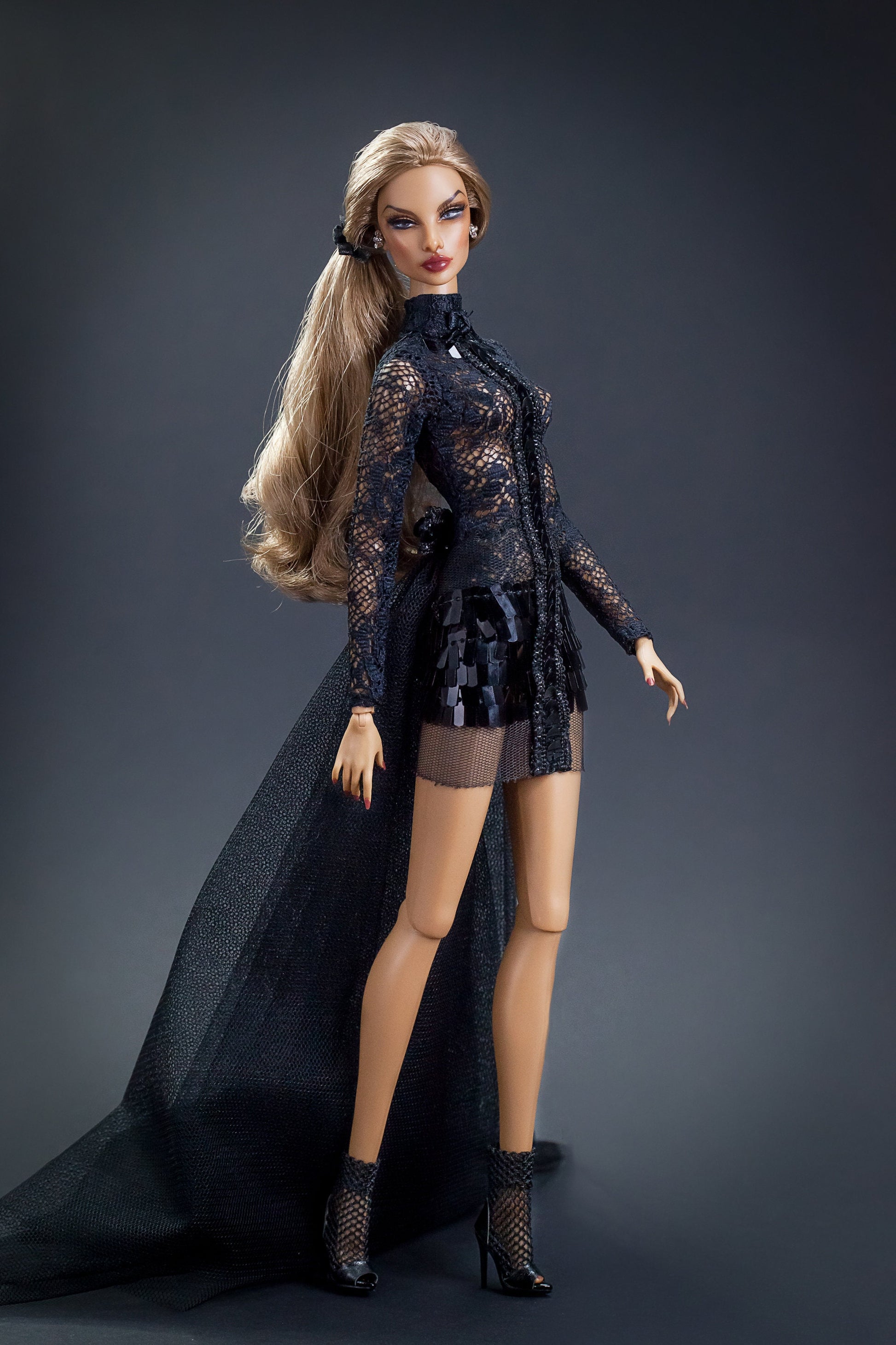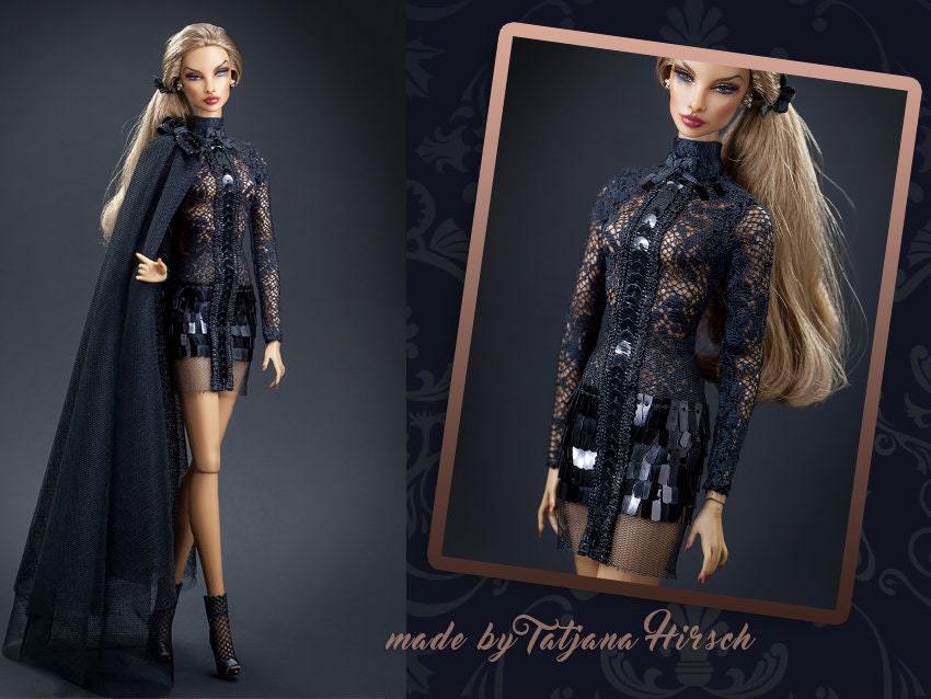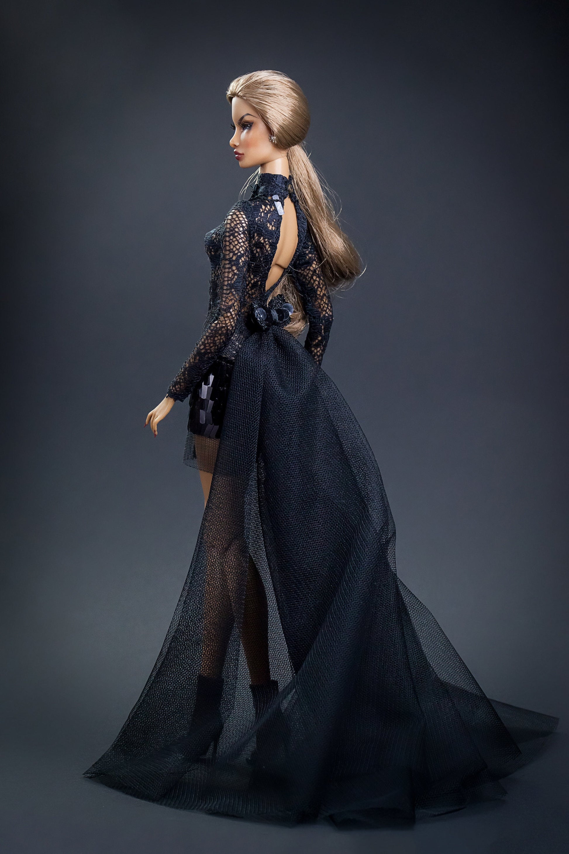 Minikleid Spitze Schleppe schwarz für Integrity Toys Poppy Parker Nu Face Fashion Royalty dolls
