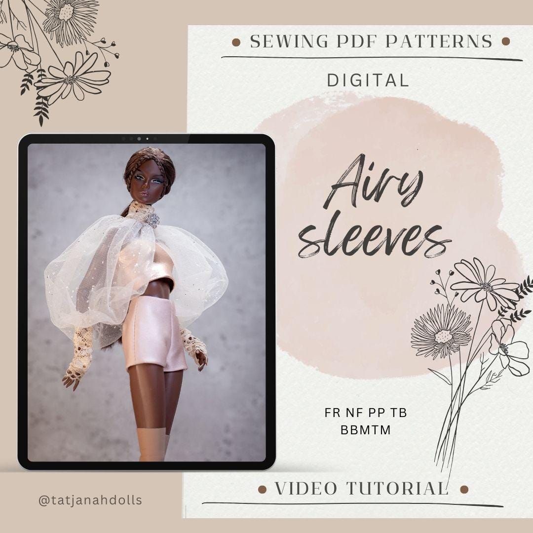 PDF Digital Pattern airy sleeves blouse for BB & Integrity toys dolls. VIDEO tutorial.