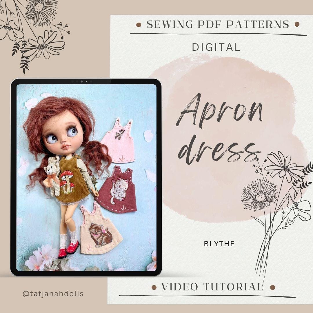 PDF Digital Pattern apron dress für Blythe 1:6 doll. Youtube VIDEO.