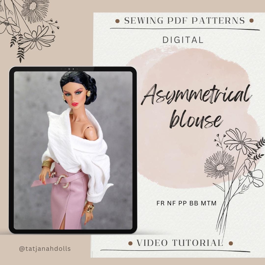 PDF Digital Pattern asymmetrical blouse Fashion Royalty Nu Face Poppy Parker BB MTM dolls + tutorial