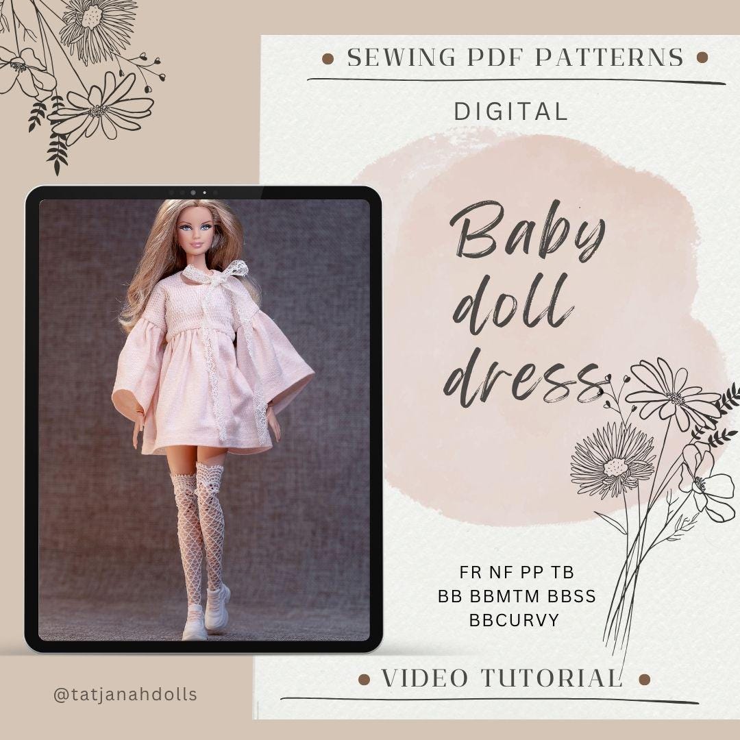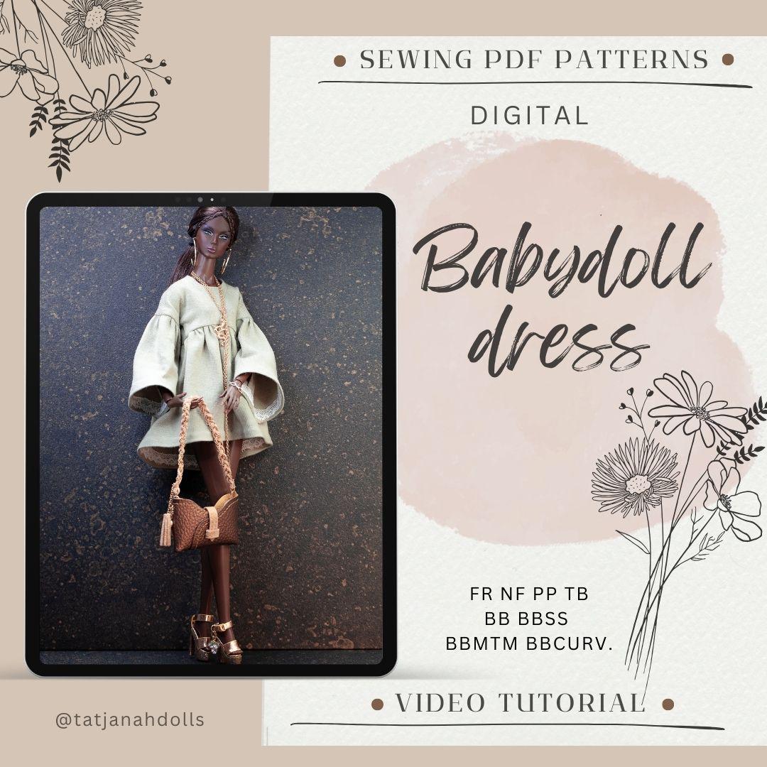 PDF Digital Pattern babydoll dress for BB, Curv. & Integrity toys dolls. VIDEO tutorial.