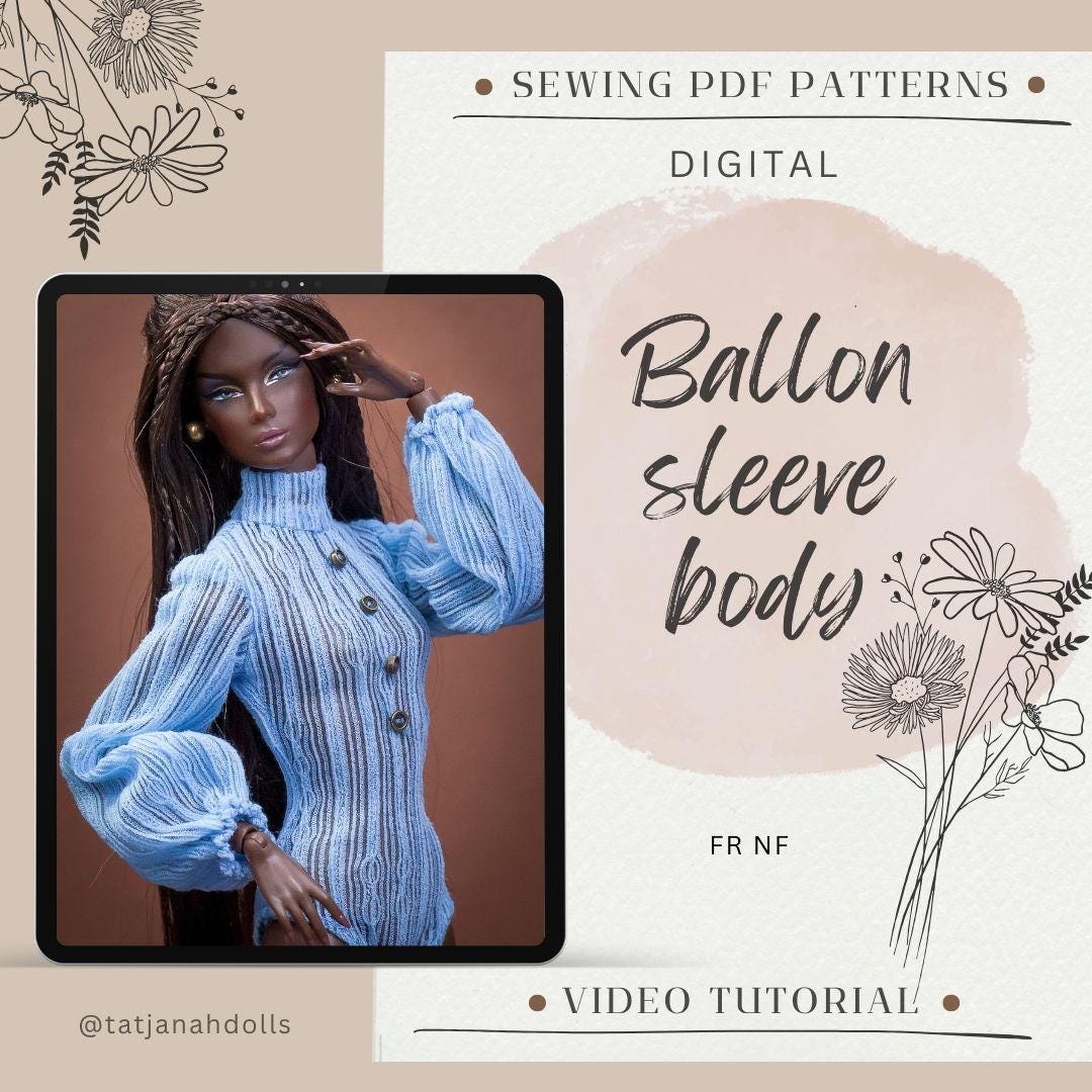 PDF Digital Pattern ballon sleeve body for Fashion Royalty Nu Face doll Integrity toys. Youtube VIDEO tutorial.