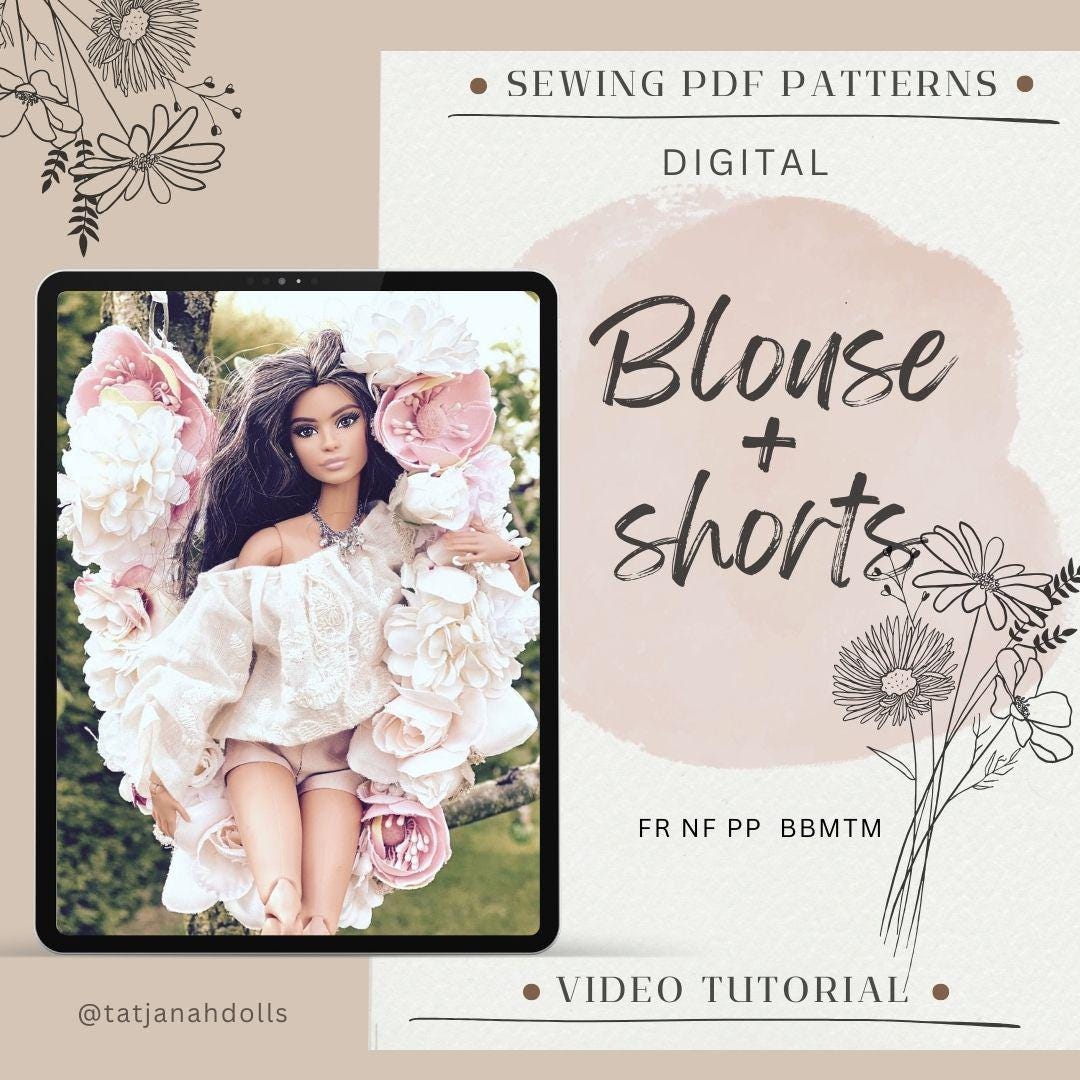 PDF Digital Pattern blouse and shorts for BB & Integrity toys dolls. VIDEO tutorial.