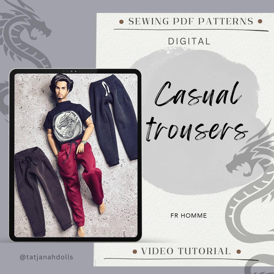PDF Digital Pattern casual trousers for male FR HOMME dolls Integrity toys. Video tutorial.