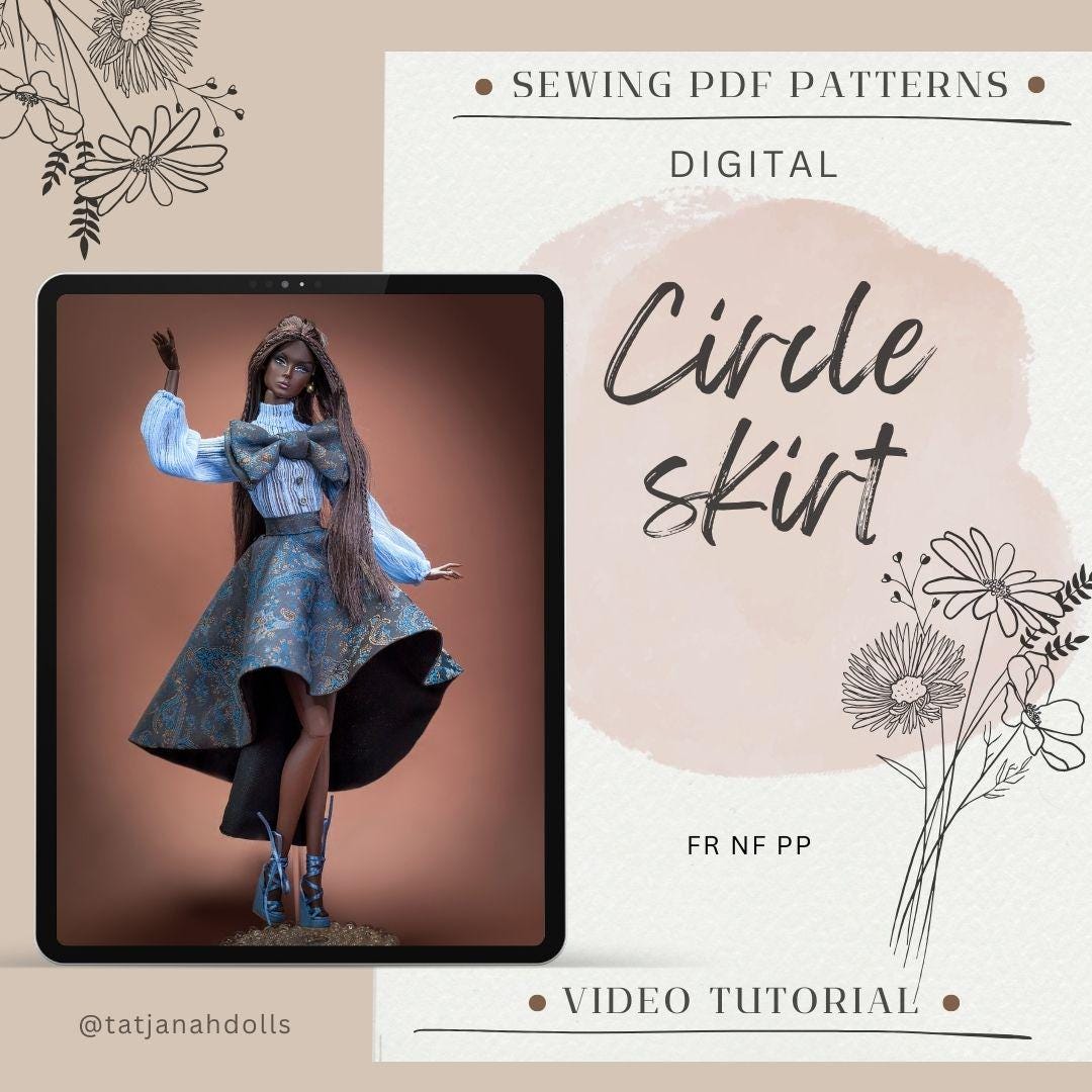 PDF Digital Pattern circle skirt for Fashion Royalty Nu Face Poppy Parker doll Integrity toys. VIDEO tutorial.