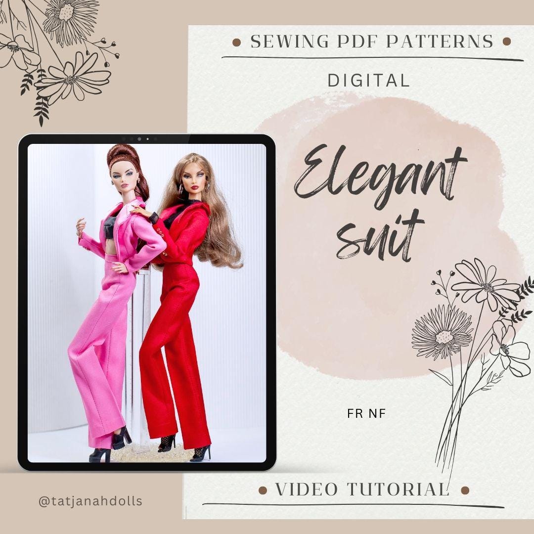 PDF Digital Pattern elegant suit blazer & trousers for Fashion Royalty Nu Face doll Integrity toys. VIDEO tutorial.