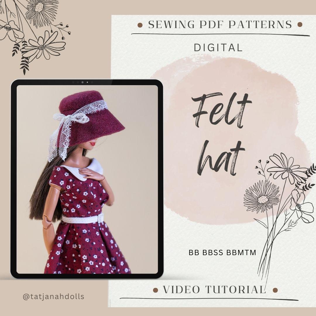 PDF Digital Pattern felt hat for BB, BBMTM 30 cm dolls. Video making tutorial.