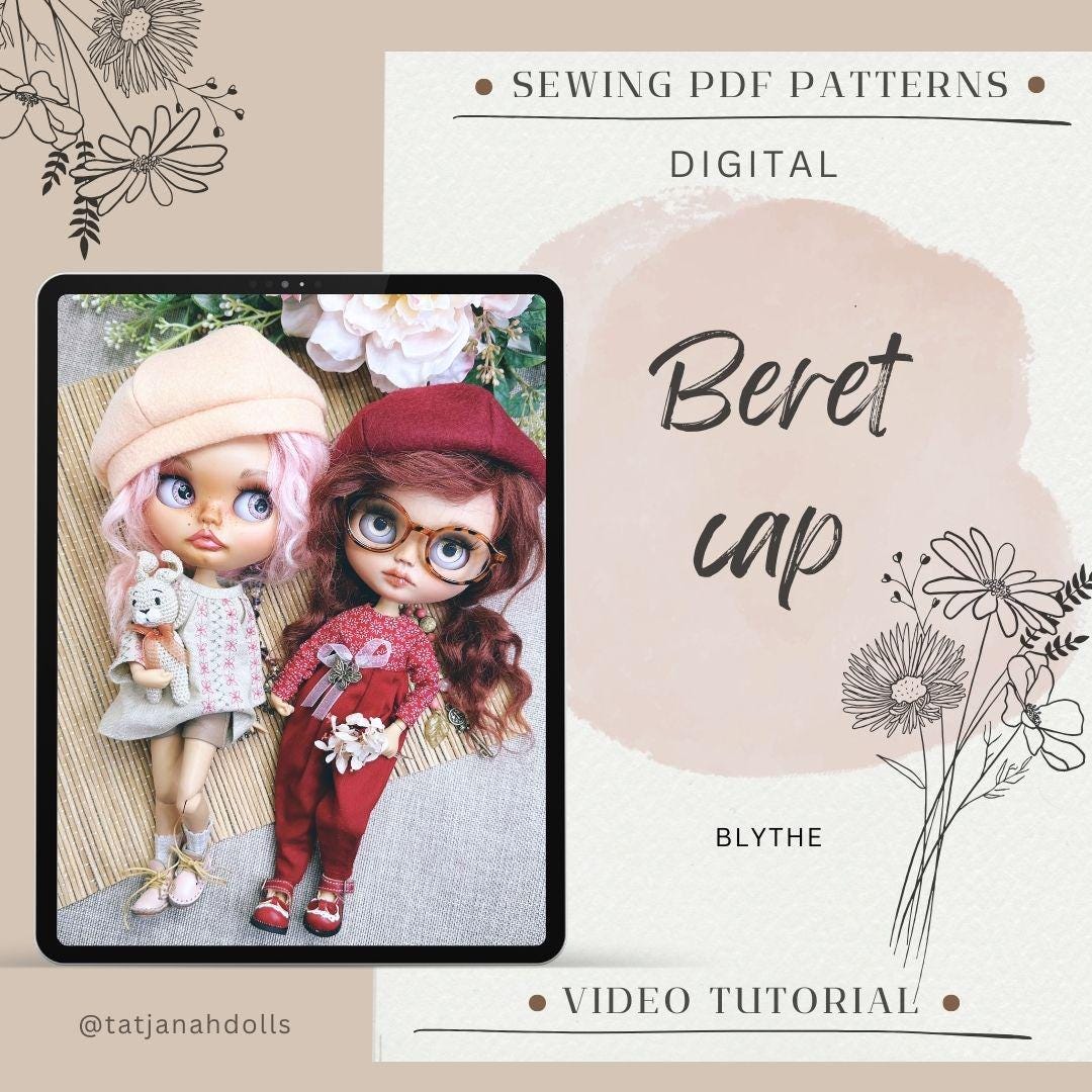 PDF Digital Pattern filt beret cap for Blythe dolls. 6 Variations. VIDEO tutorial.