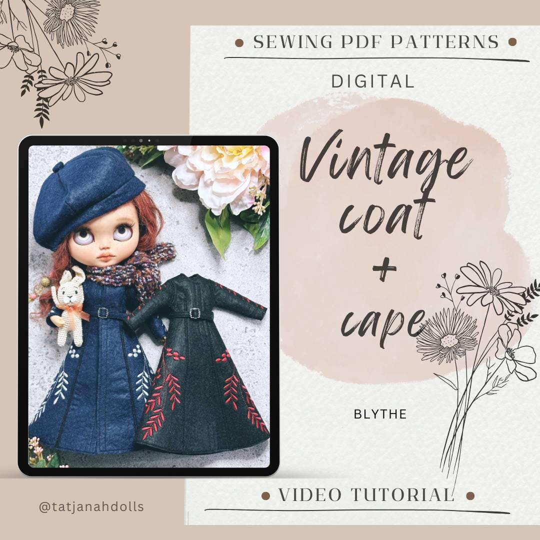 PDF Digital Pattern filt vintage coat for Blythe dolls. VIDEO tutorial.