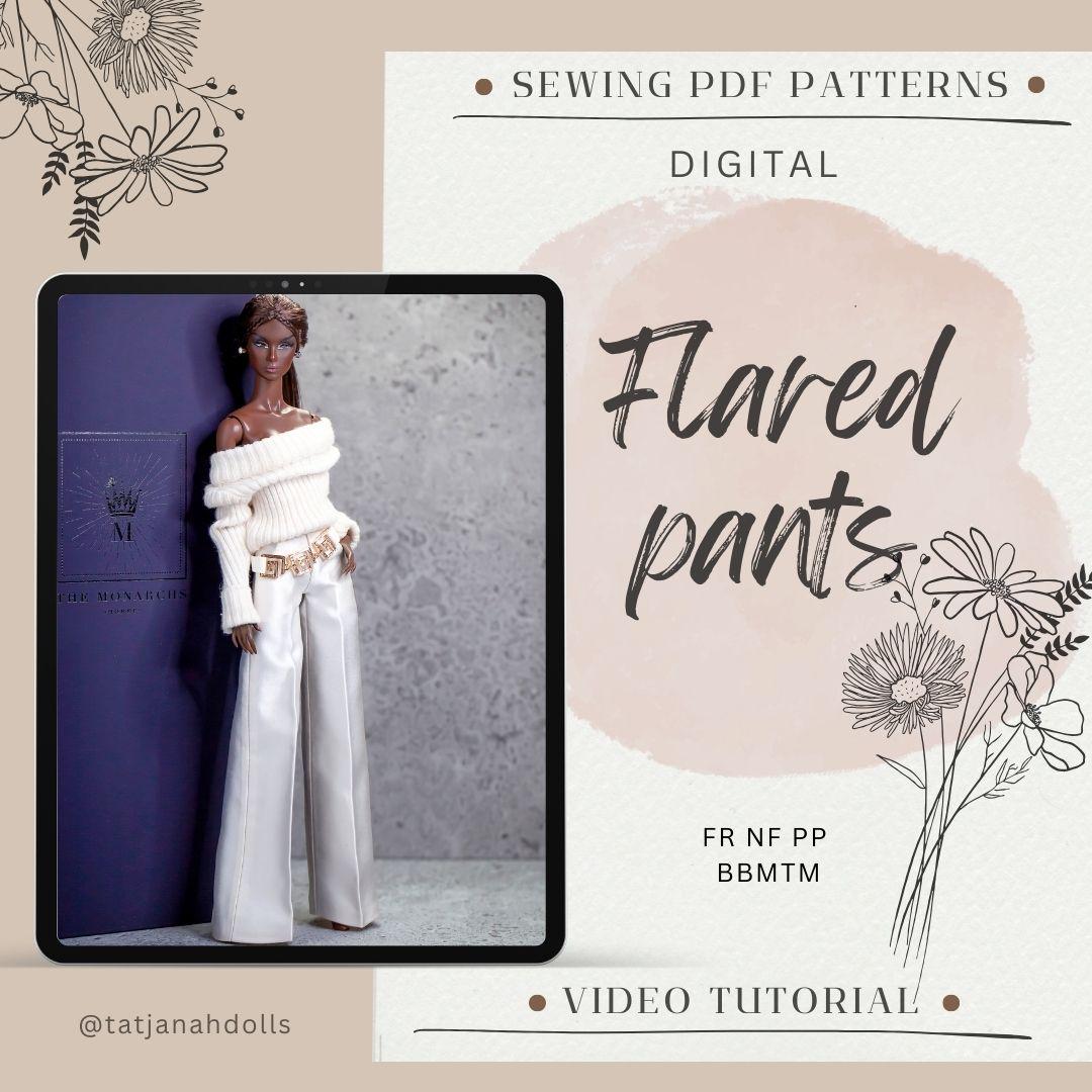 PDF Digital Pattern flared pants trousers for BB & Integrity toys 1:6 dolls. VIDEO tutorial