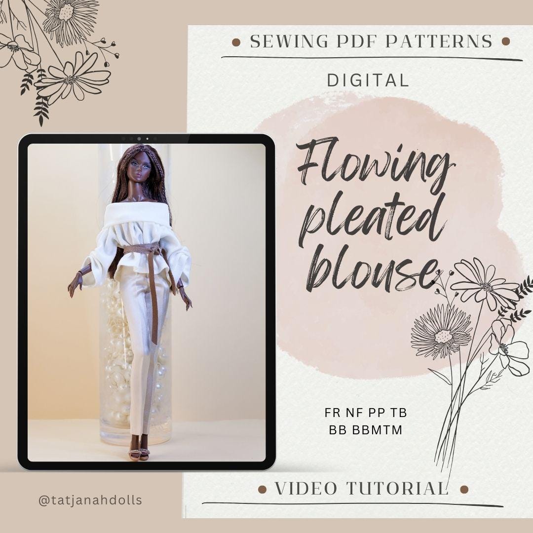 PDF Digital Pattern flowing pleated blouse for BB & Integrity toys dolls. VIDEO tutorial.