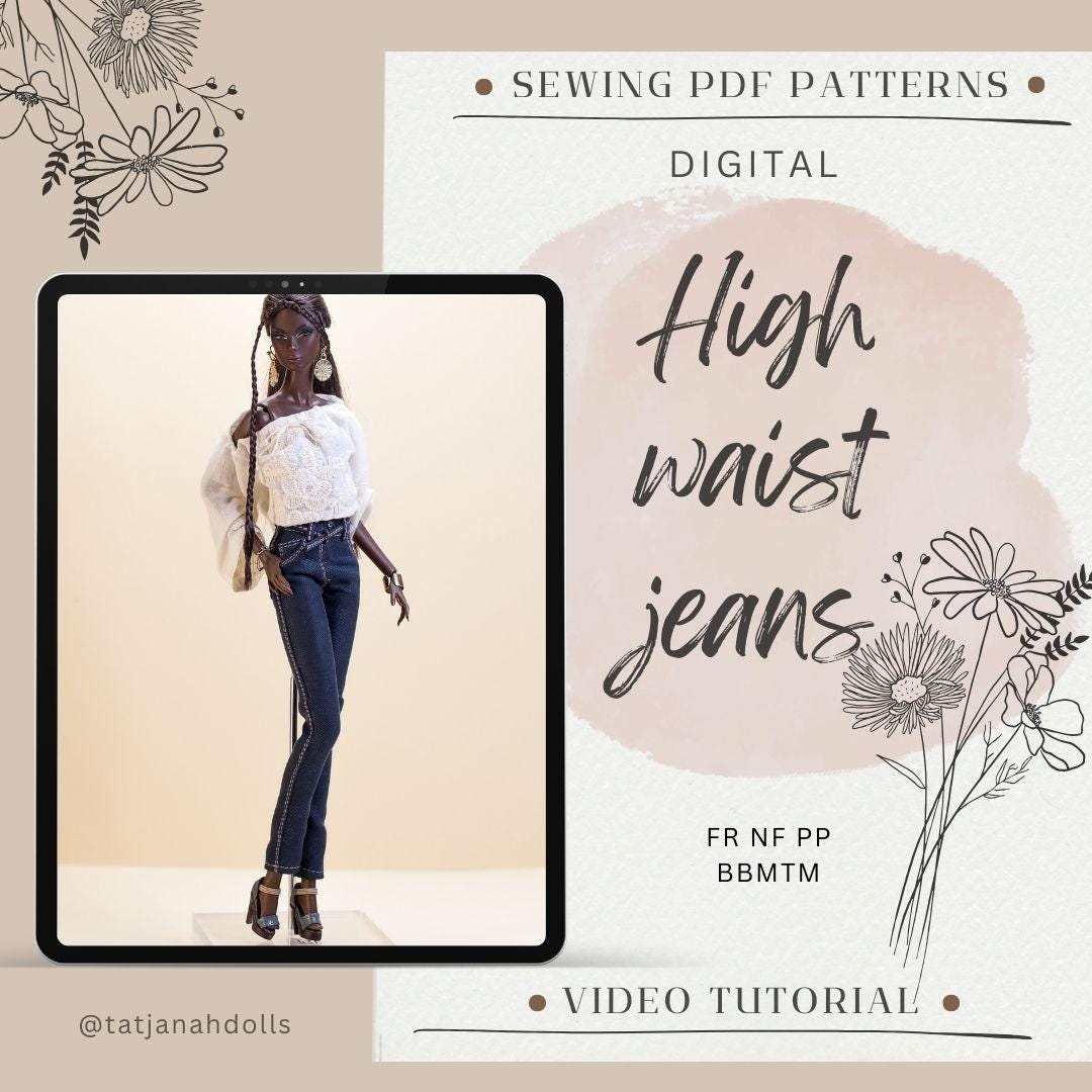PDF Digital Pattern high waist jeans for BB & Integrity toys dolls. VIDEO tutorial.