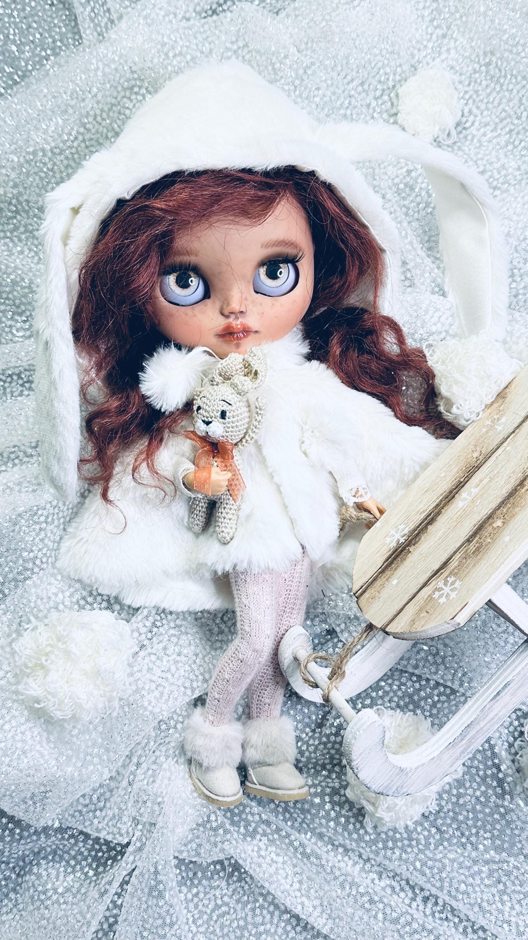 PDF Digital Pattern hooded cape with rabbit ears coat for Blythe dolls. VIDEO tutorial.