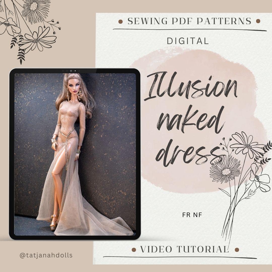 PDF Digital Pattern illusion naked dress for Fashion Royalty Nu Face dolls Integrity toys. Video Tutorial.