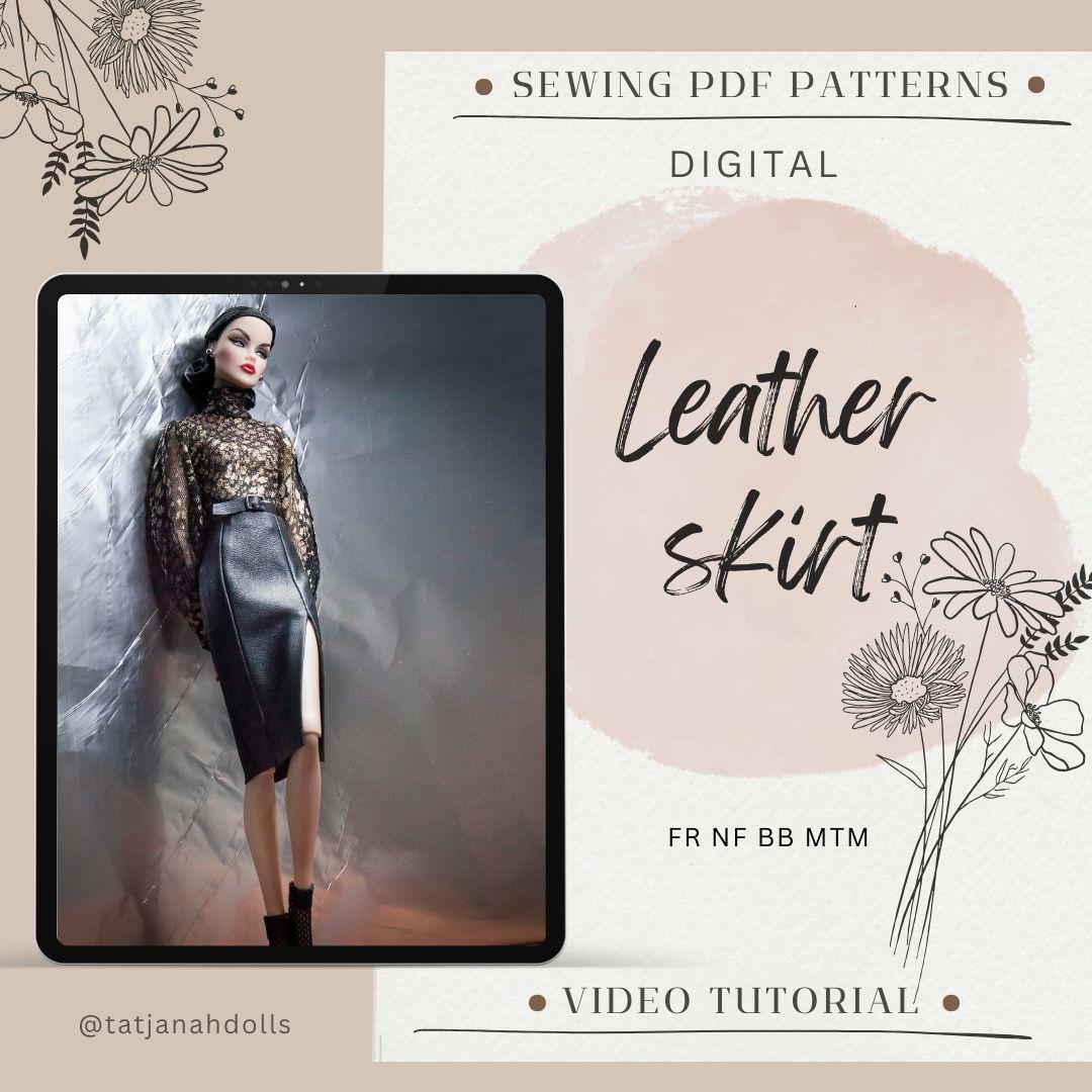 PDF Digital Pattern leather skirt for Fashion Royalty Nu Face and BB MTM dolls Integrity toys + tutorial