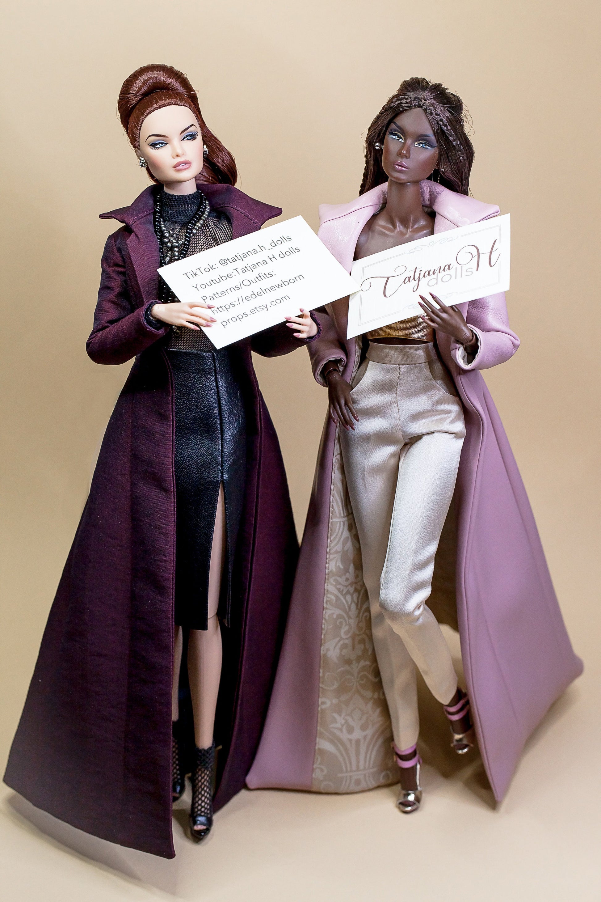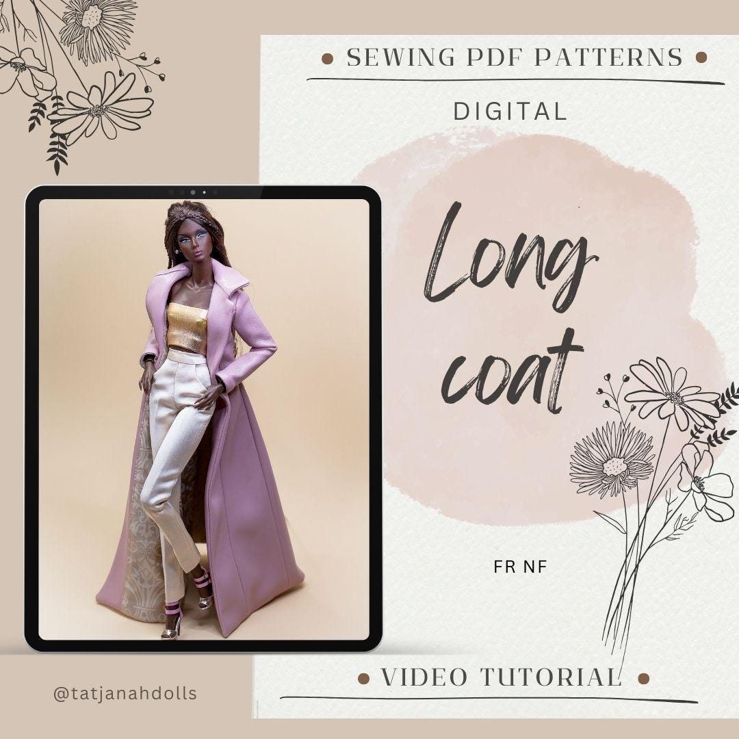 PDF Digital Pattern long coat for Fashion Royalty Nu Face doll Integrity toys. YouTube VIDEO tutorial.
