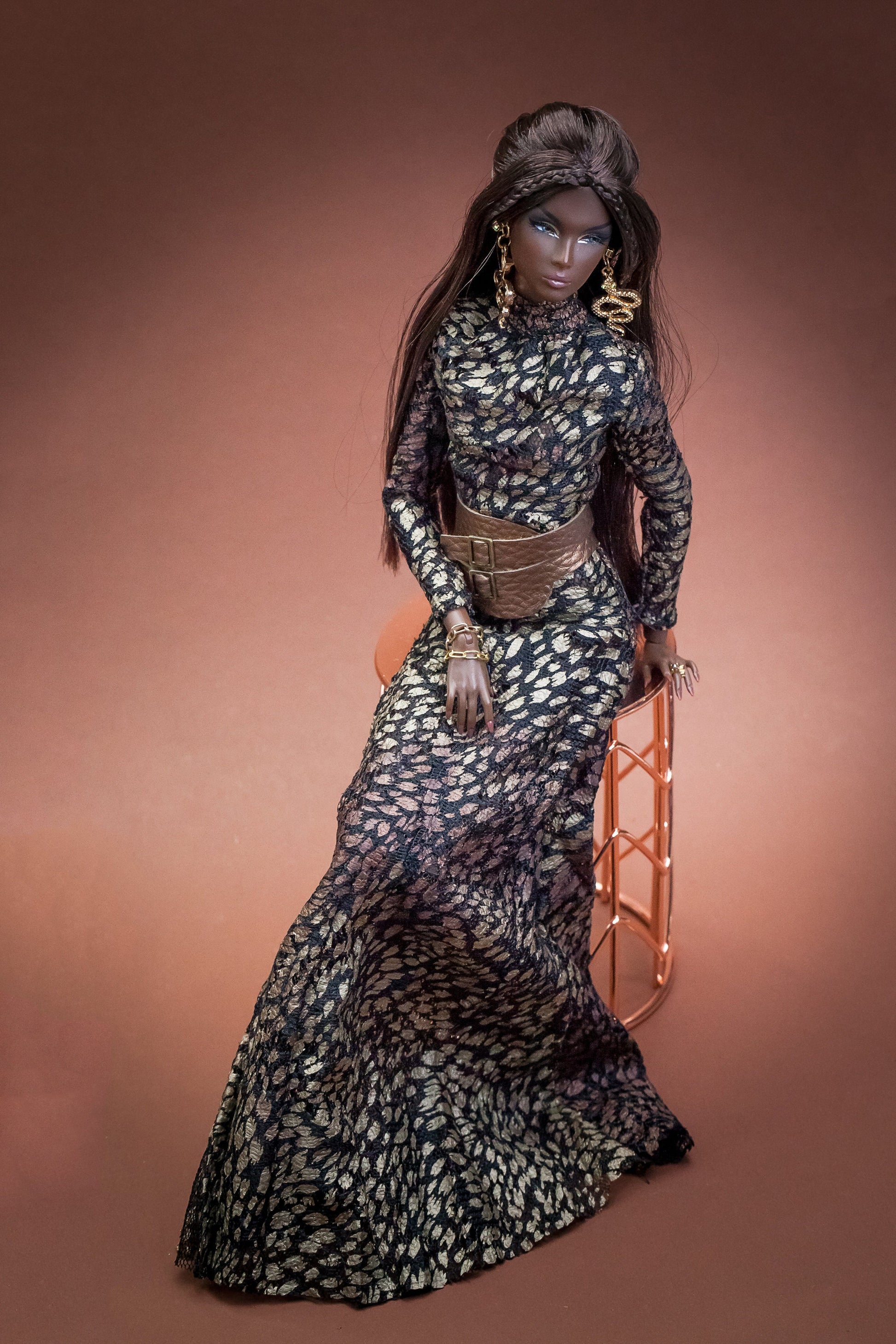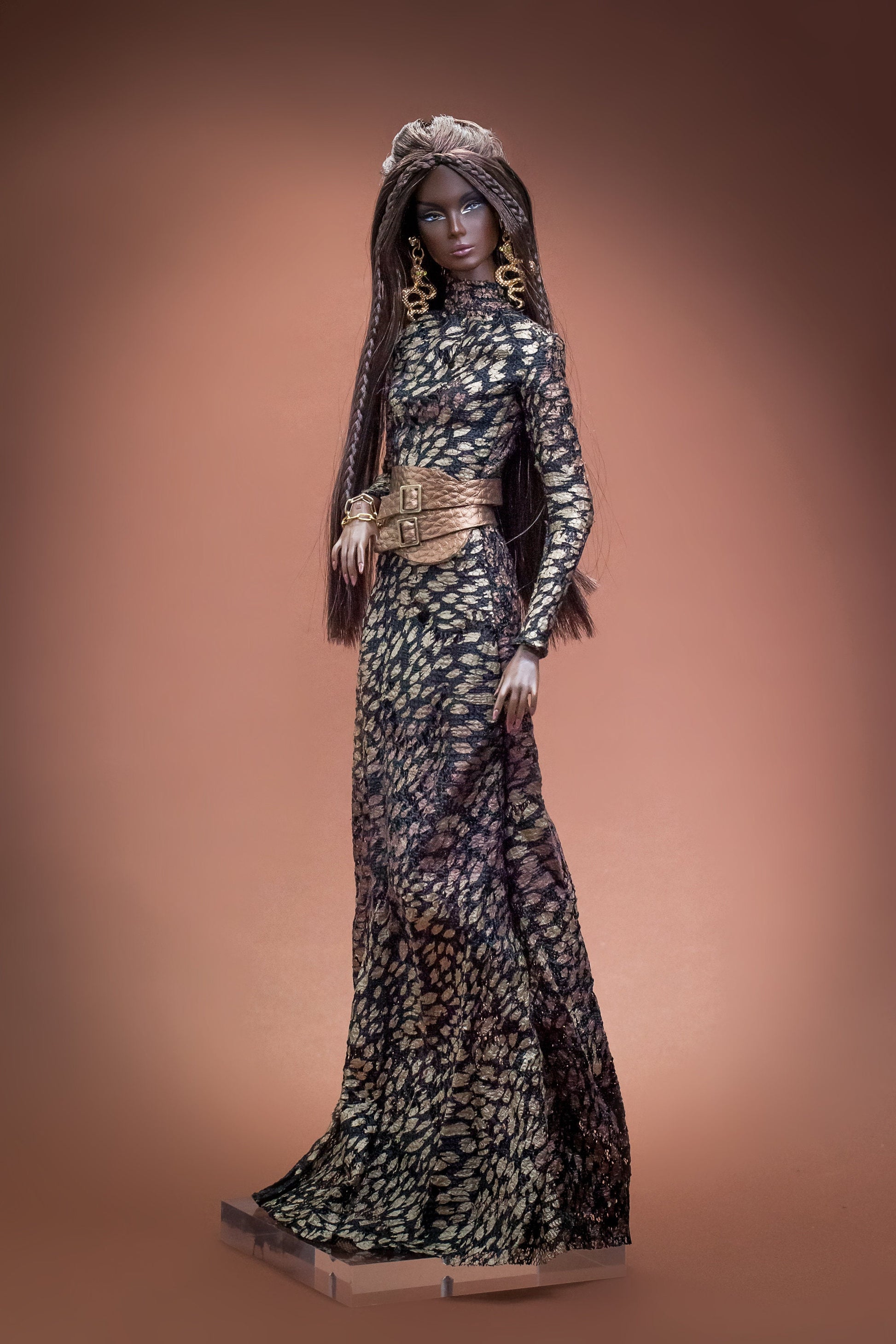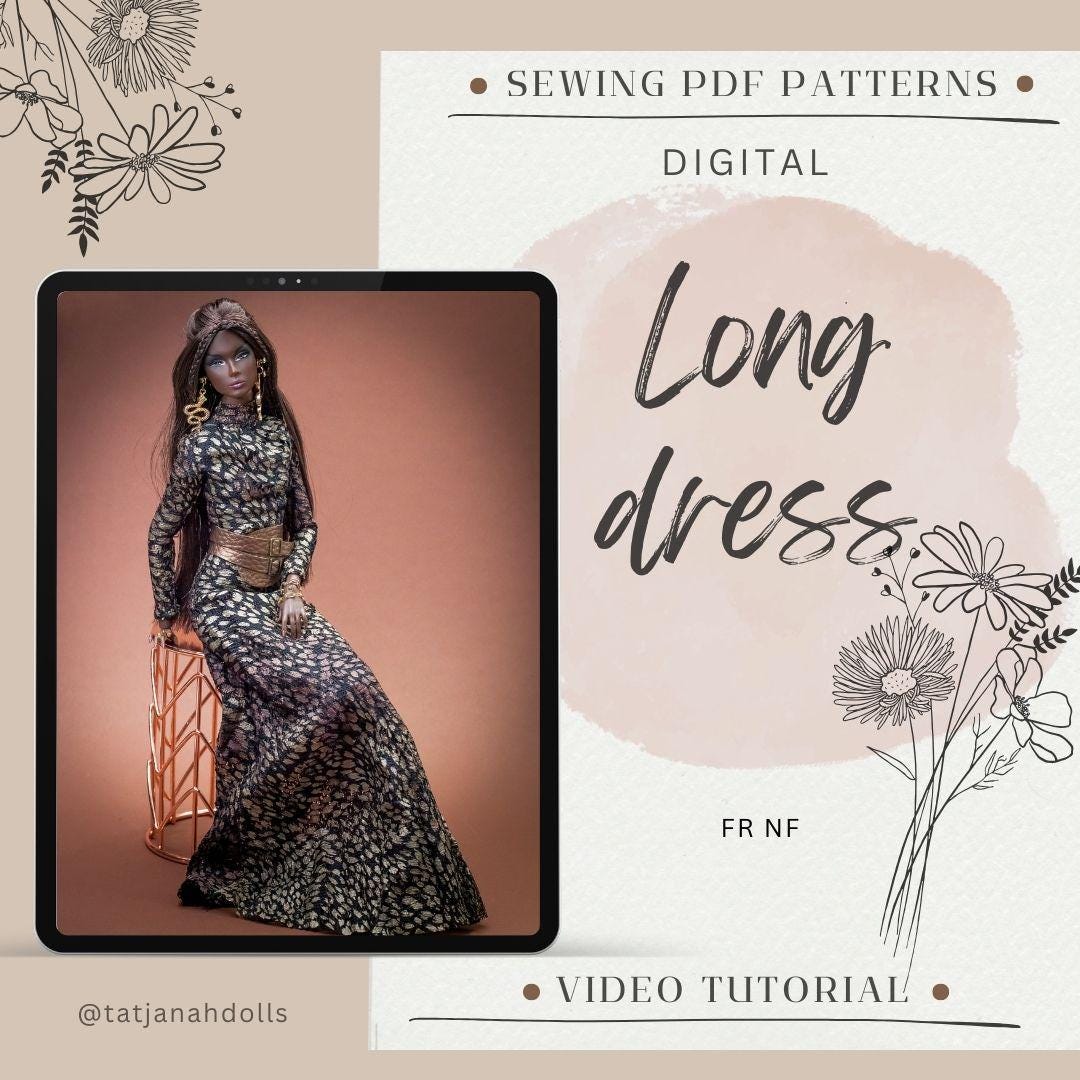 PDF Digital Pattern long dress + belt for Fashion Royalty Nu Face doll Integrity toys. Video Tutorial.