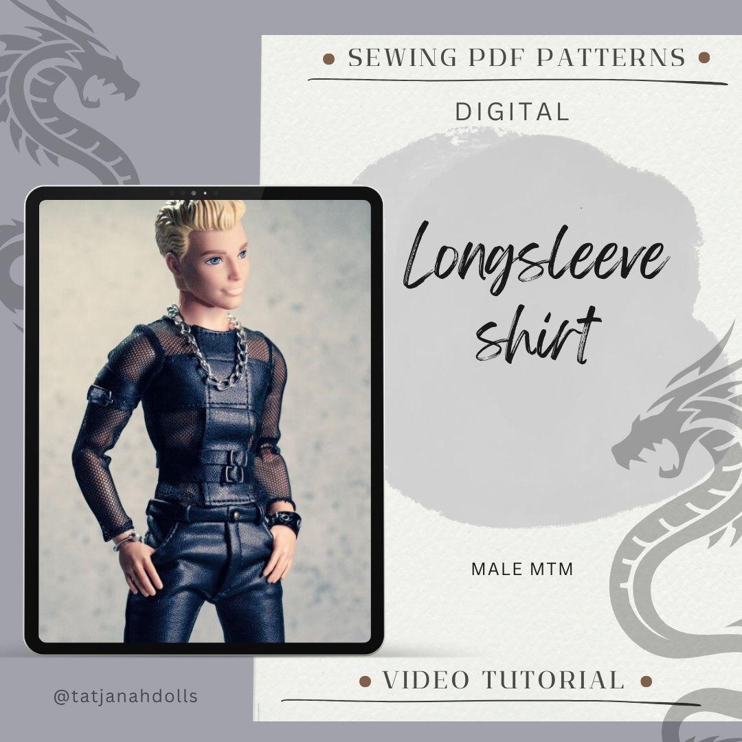 PDF Digital Pattern longsleeve shirt for 1:6 12“ male MTM fashion doll. Video tutorial.