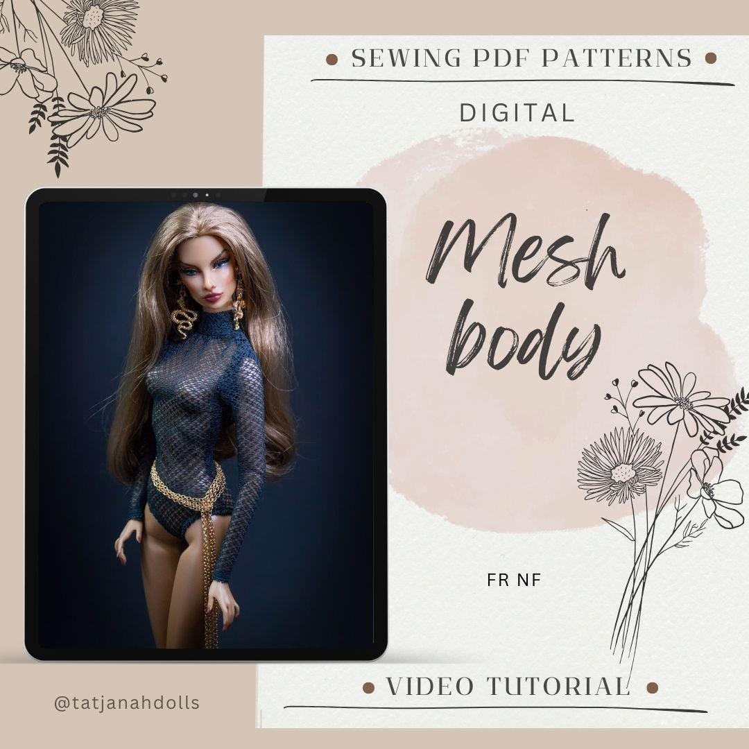 PDF Digital Pattern mesh body for Fashion Royalty doll Integrity toys. Youtube VIDEO tutorial.