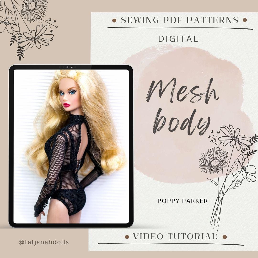 PDF Digital Pattern mesh body for Poppy Parker Integrity toys. Youtube VIDEO tutorial.