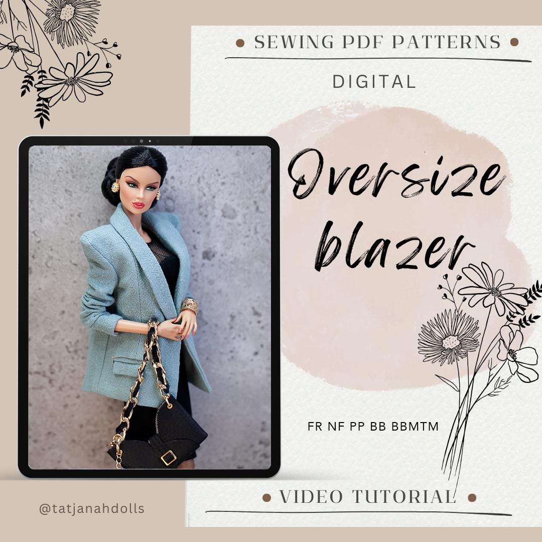PDF Digital Pattern oversize blazer Fashion Royalty Nu Face Poppy Parker BBMTM dolls Integrity toys. + VIDEO
