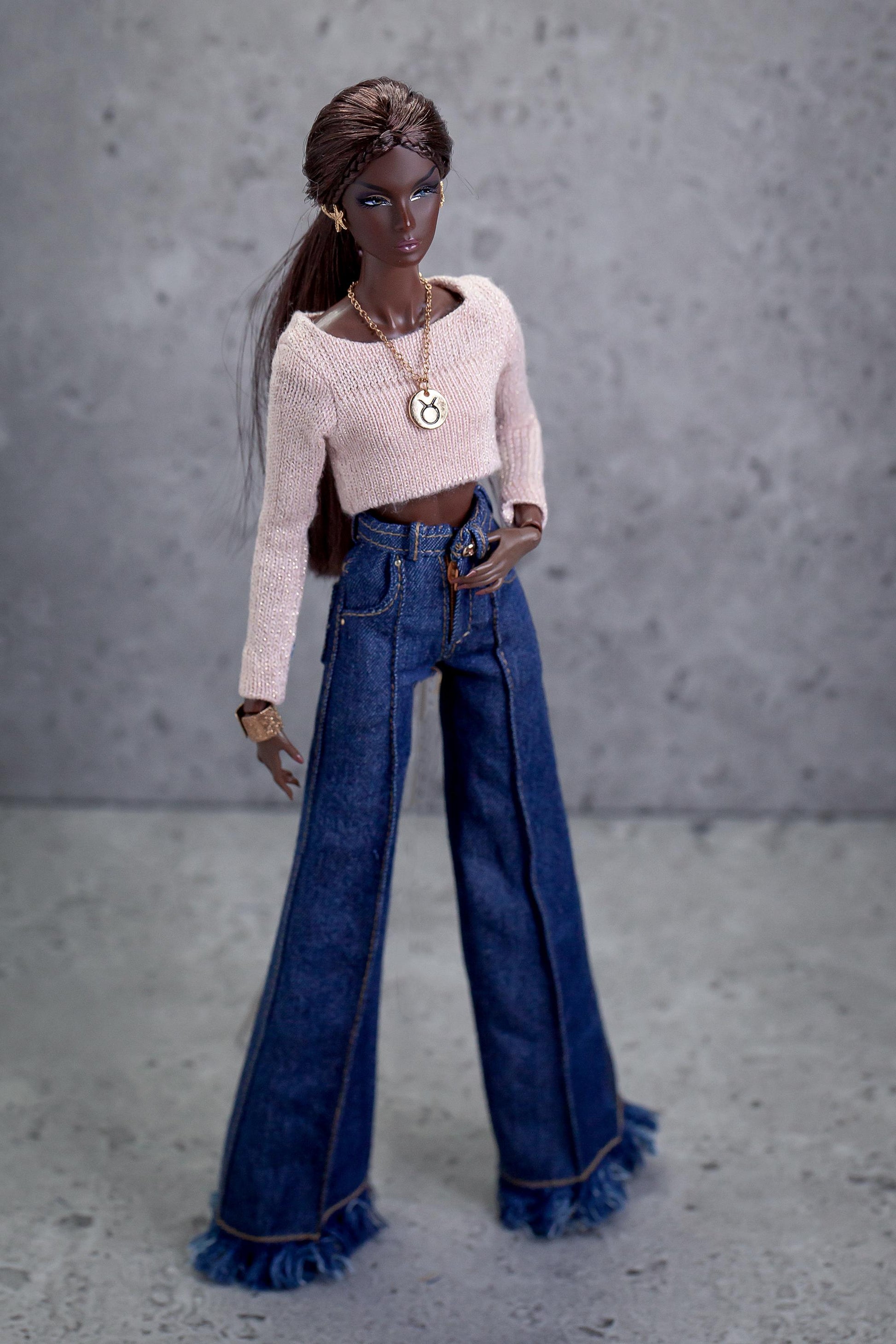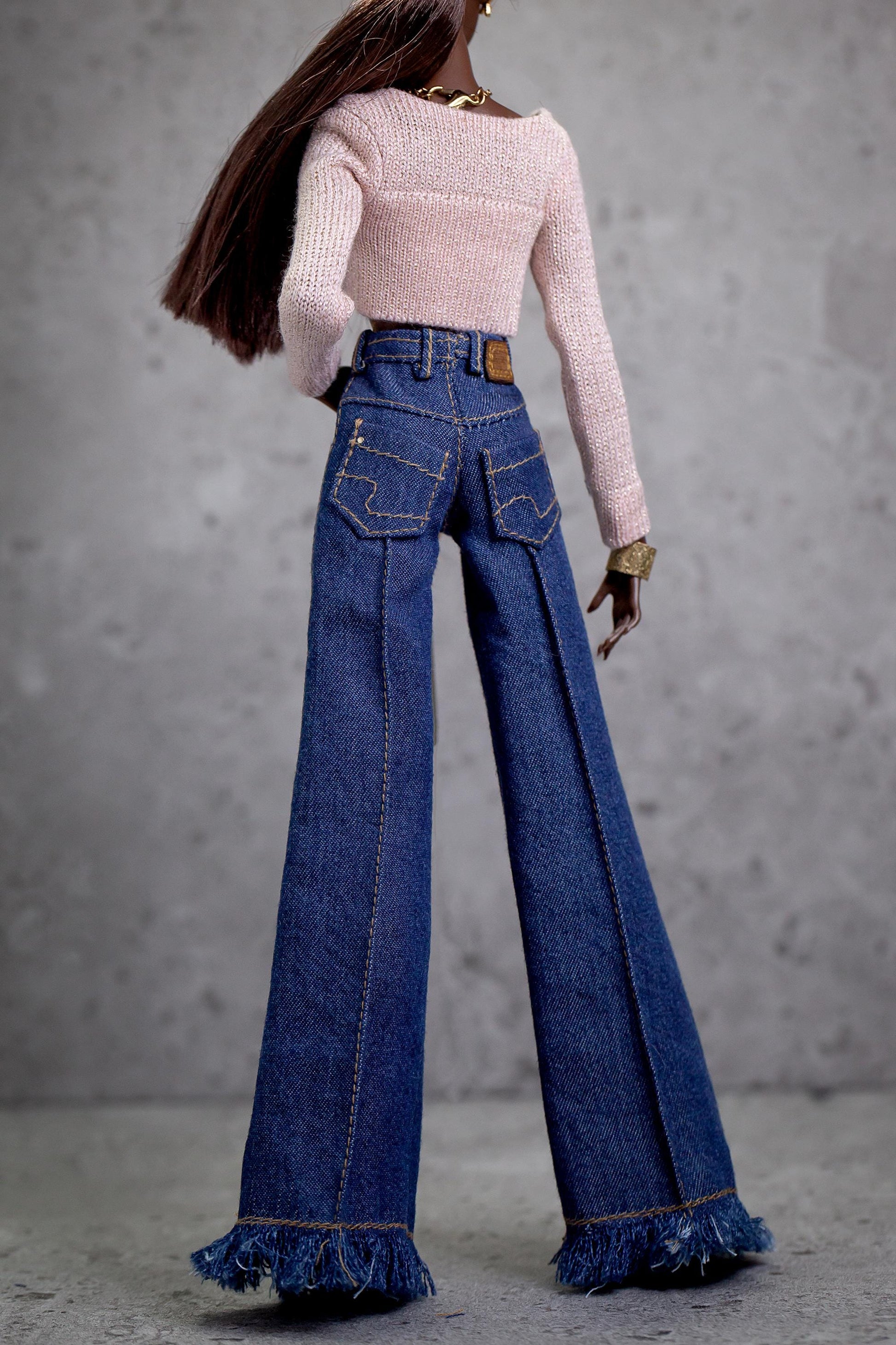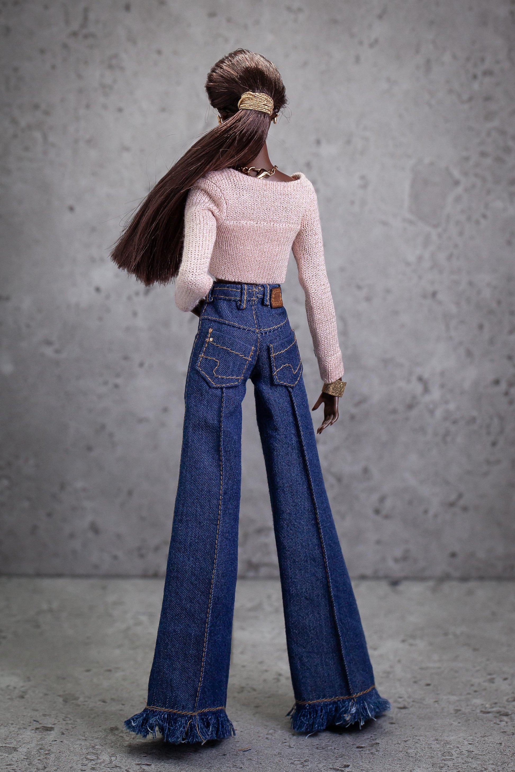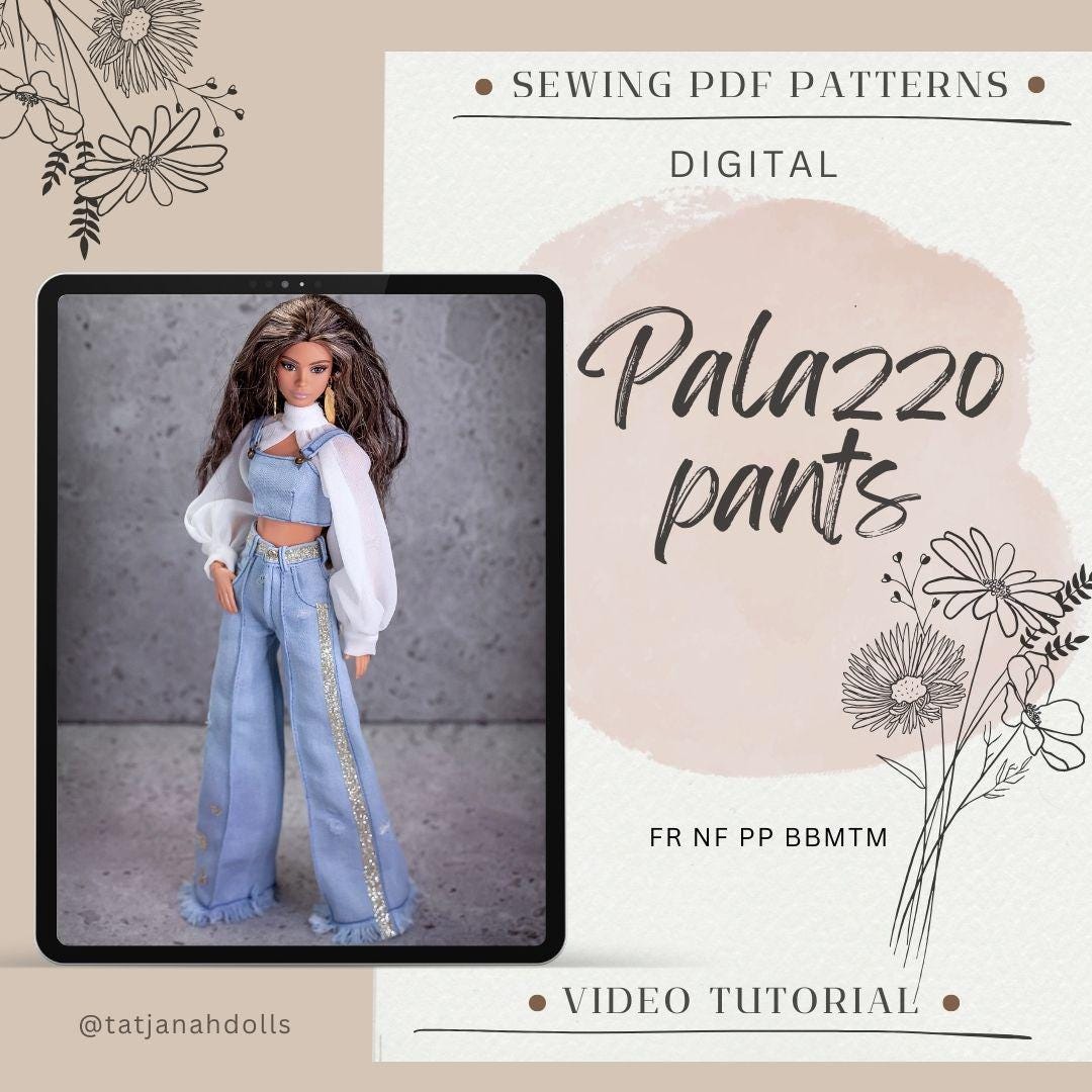 PDF Digital Pattern palazzo jeans pants for BB MTM & Integrity toys dolls. Video tutorial.