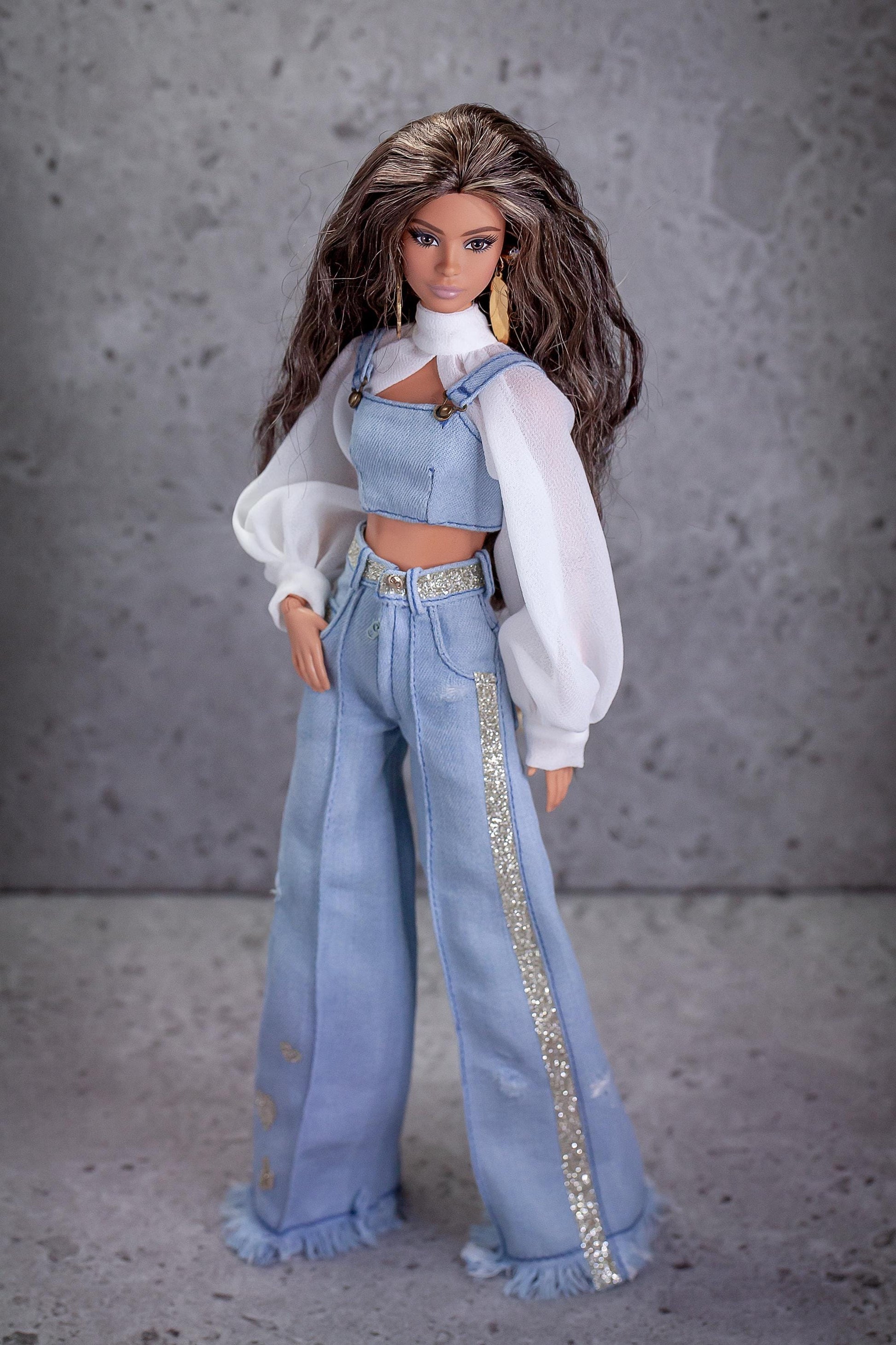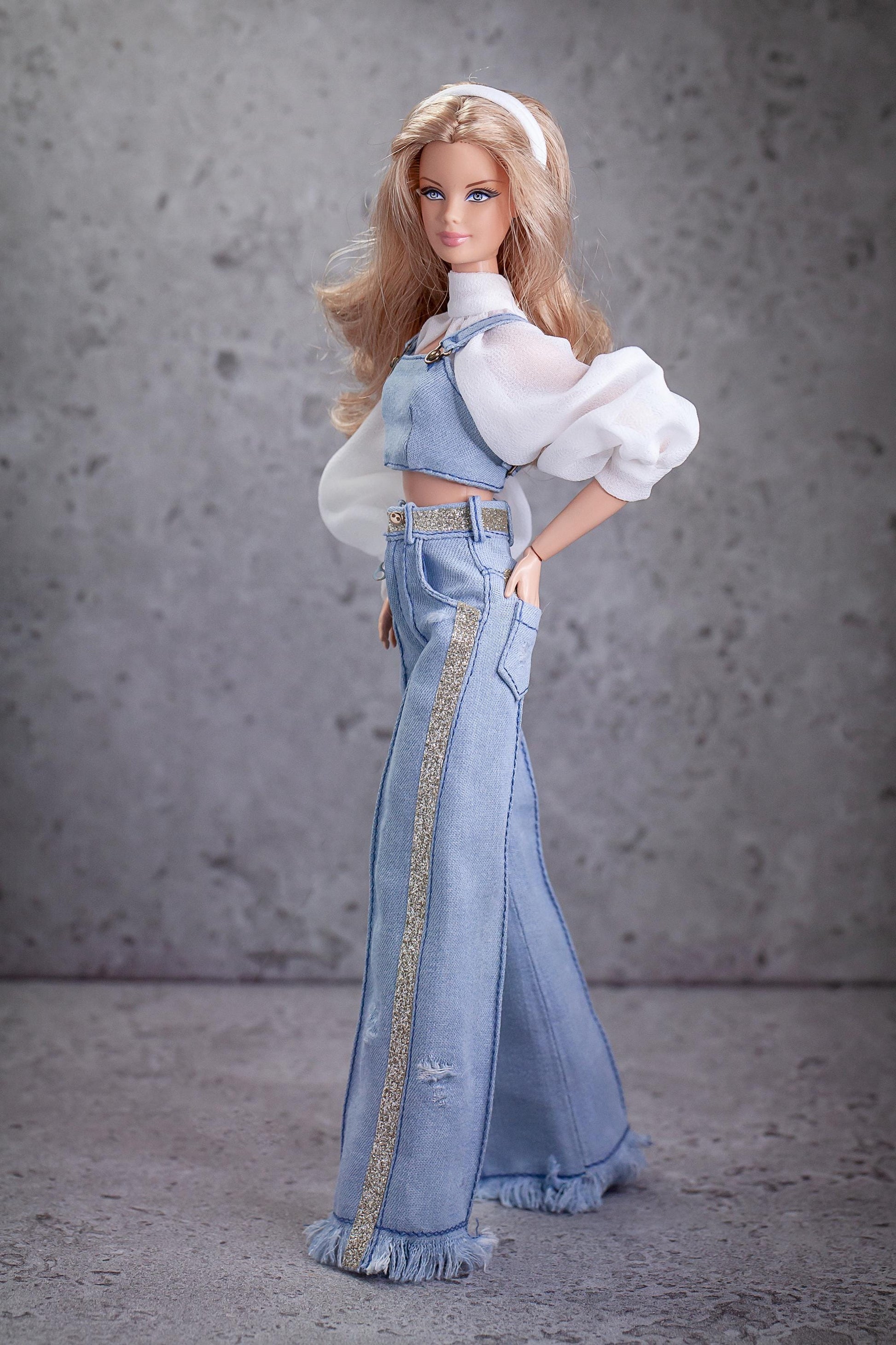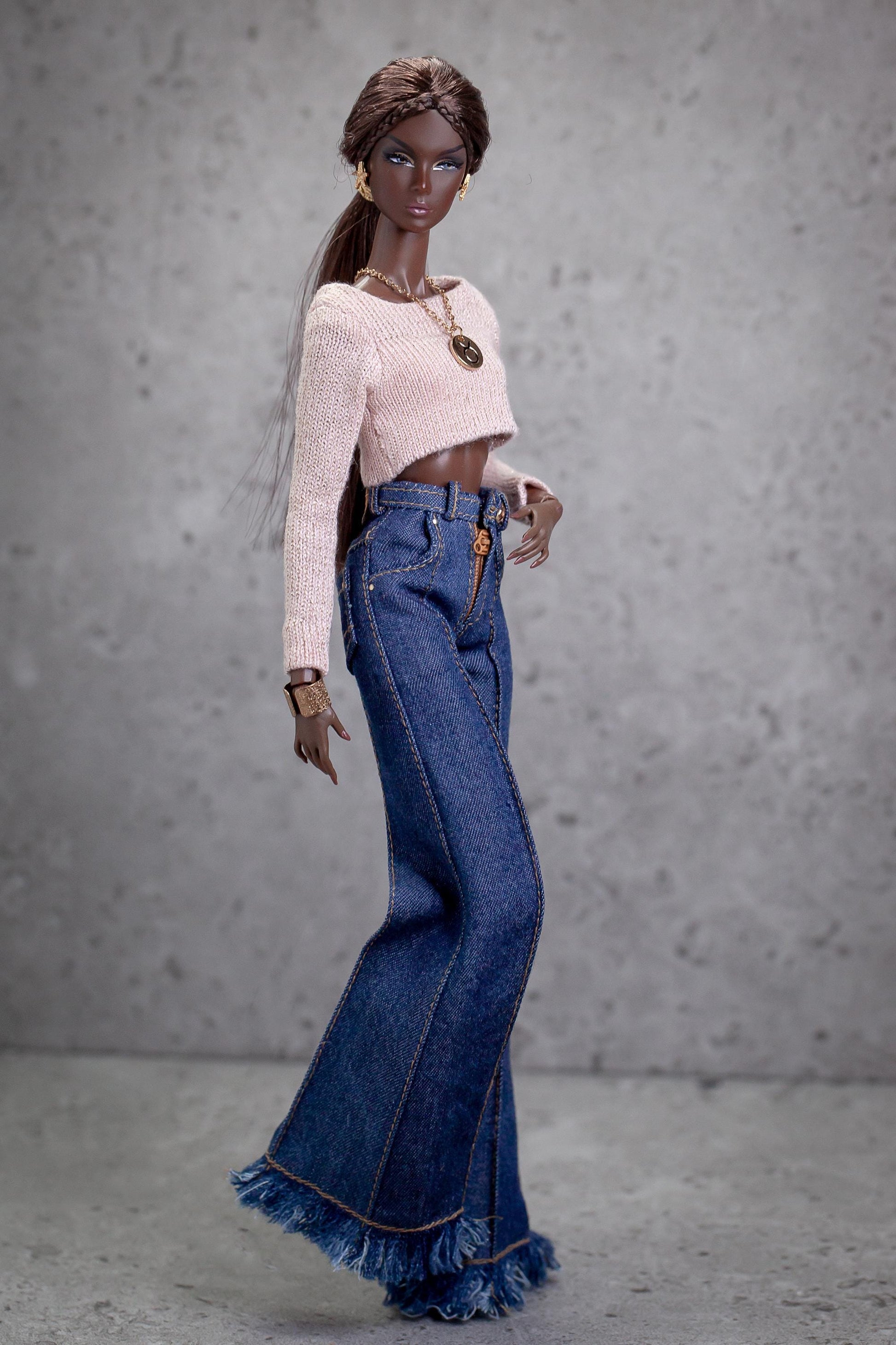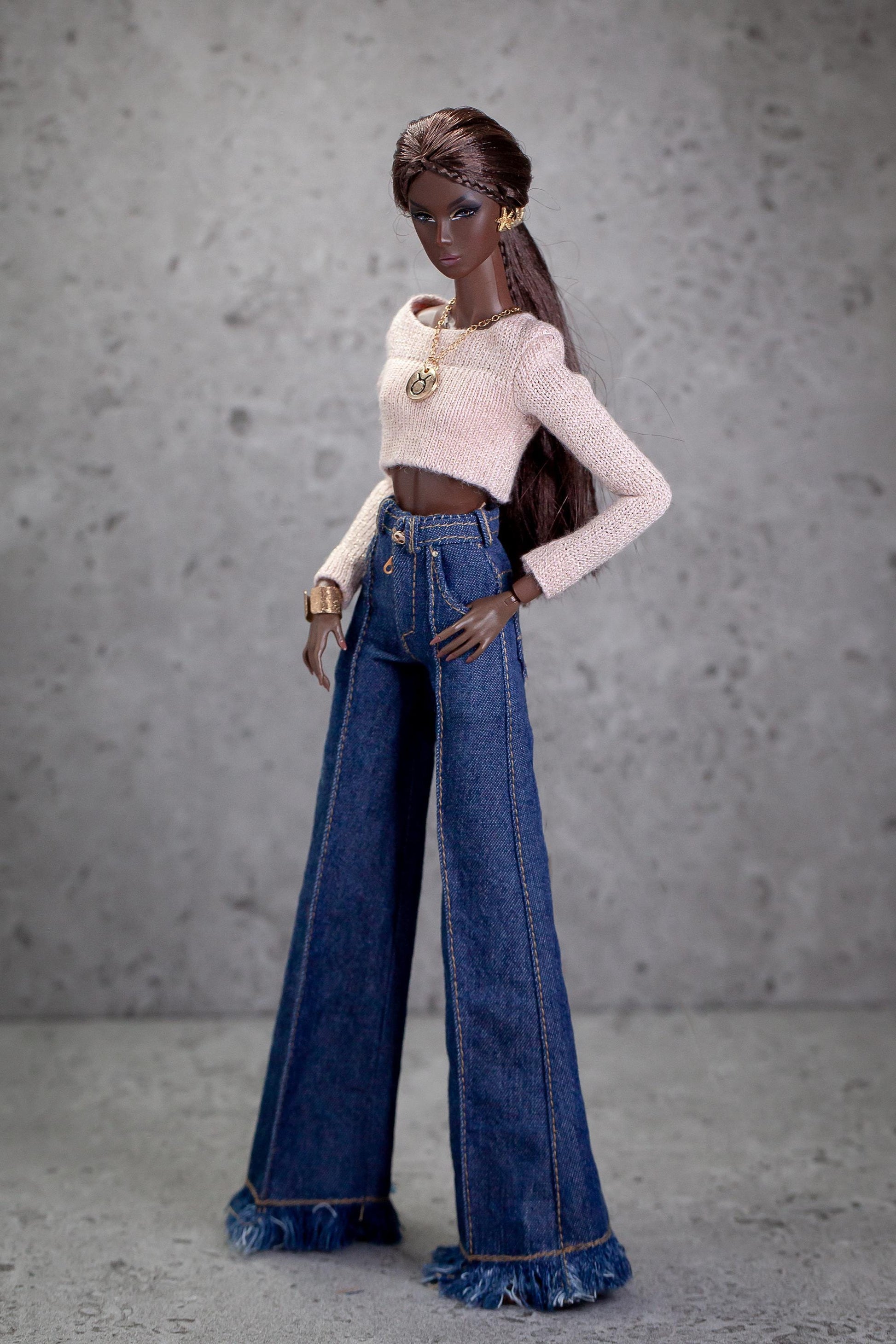PDF Digital Pattern palazzo jeans pants for BB MTM & Integrity toys dolls. Video tutorial.