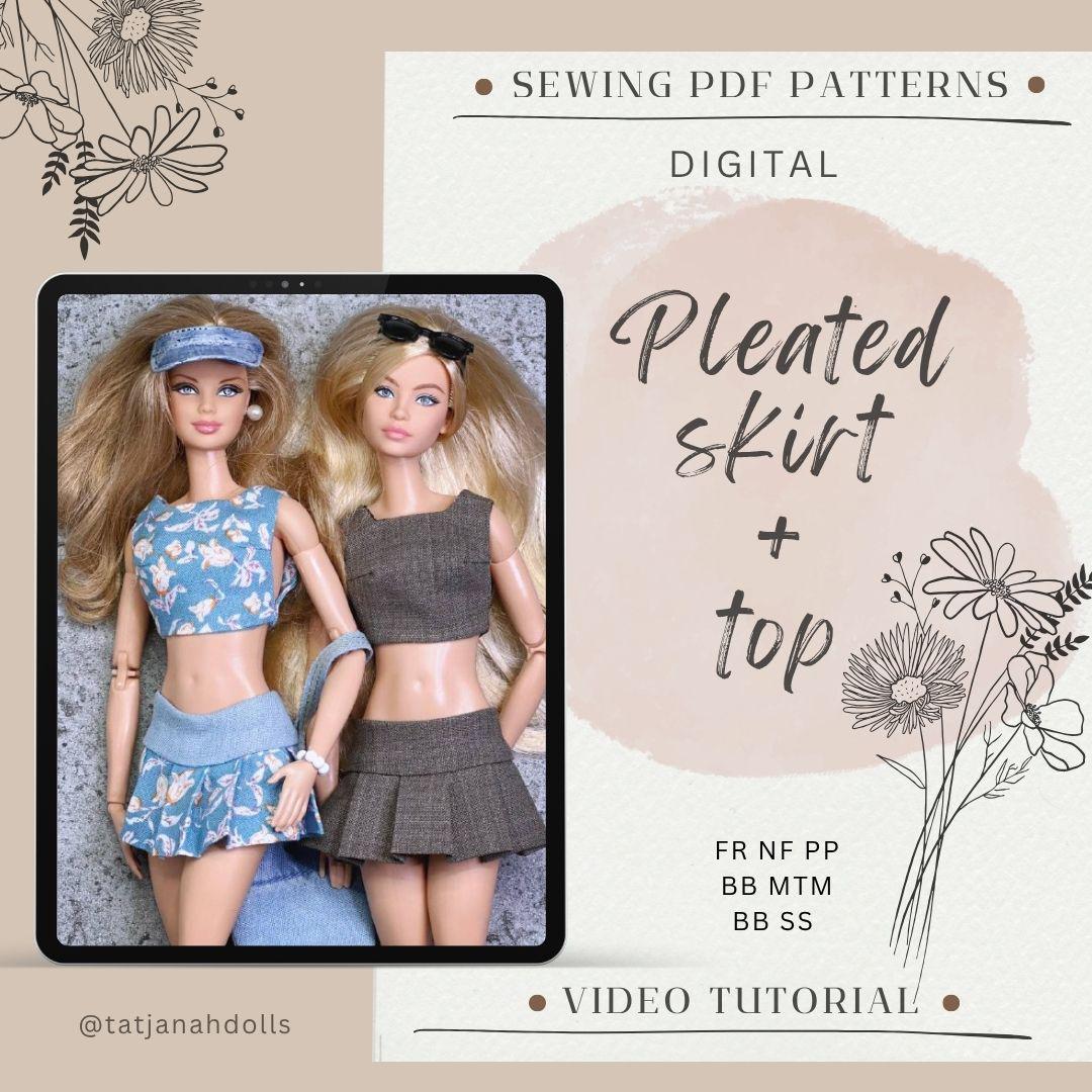 PDF Digital Pattern pleated skirt and top for Fashion Royalty, Nu Face, Poppy Parker, BBMTM, BBSS dolls. + Video tutorial