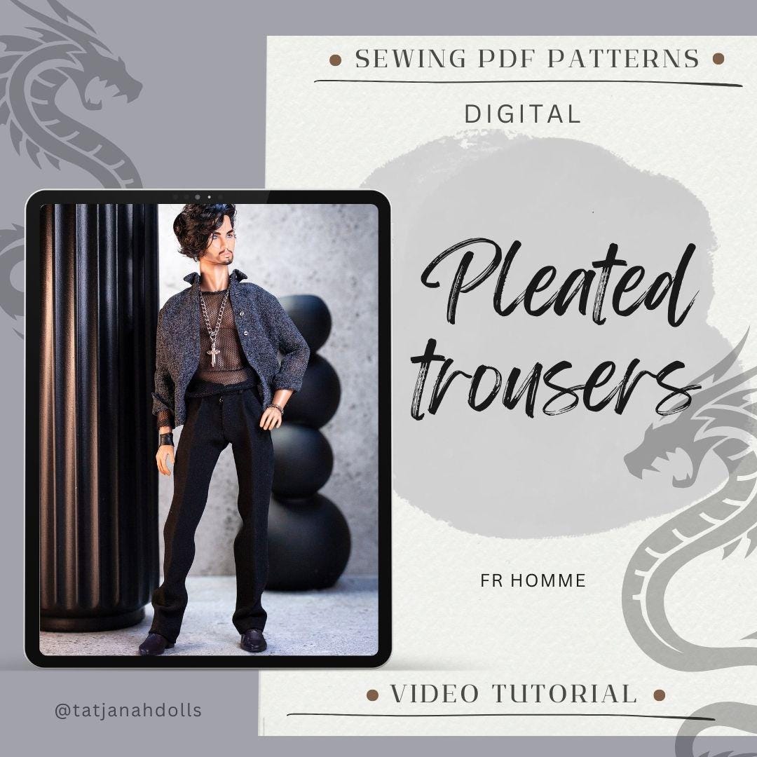 PDF Digital Pattern pleated trousers pants for male FR HOMME doll Integrity toys.