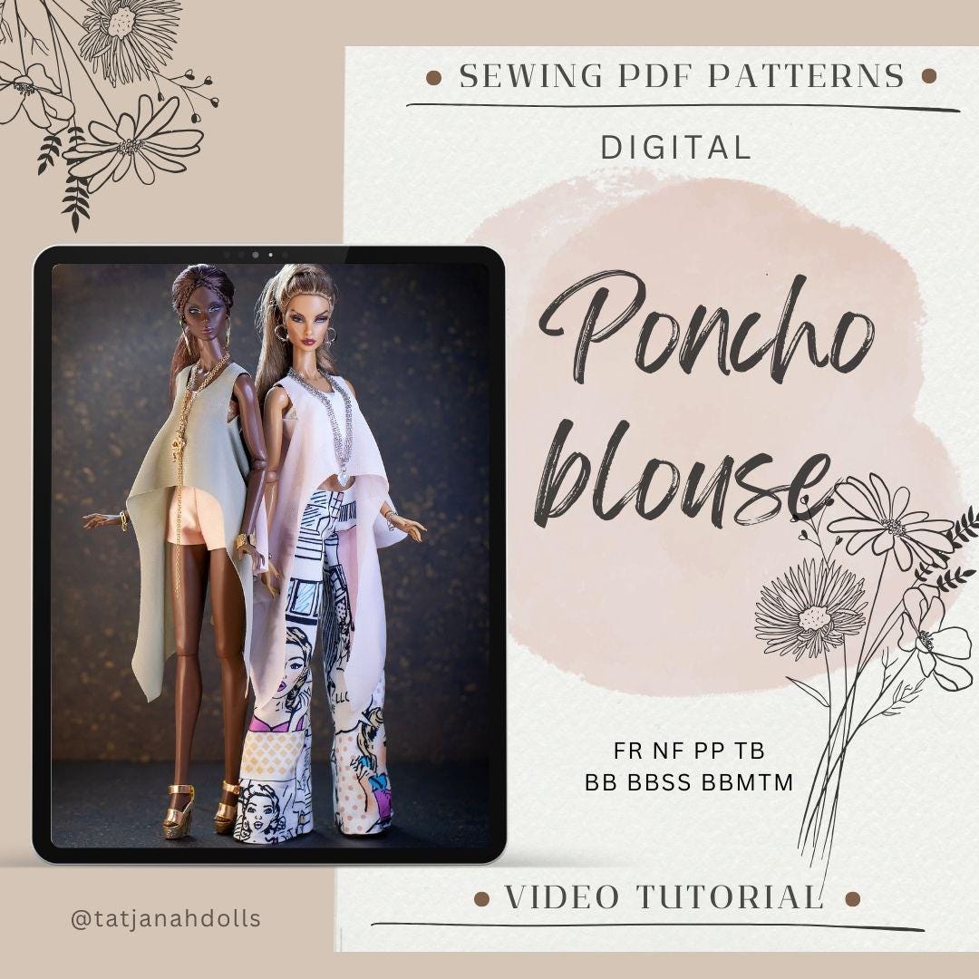PDF Digital Pattern poncho blouse for BB & Integrity toys dolls. VIDEO making tutorial.