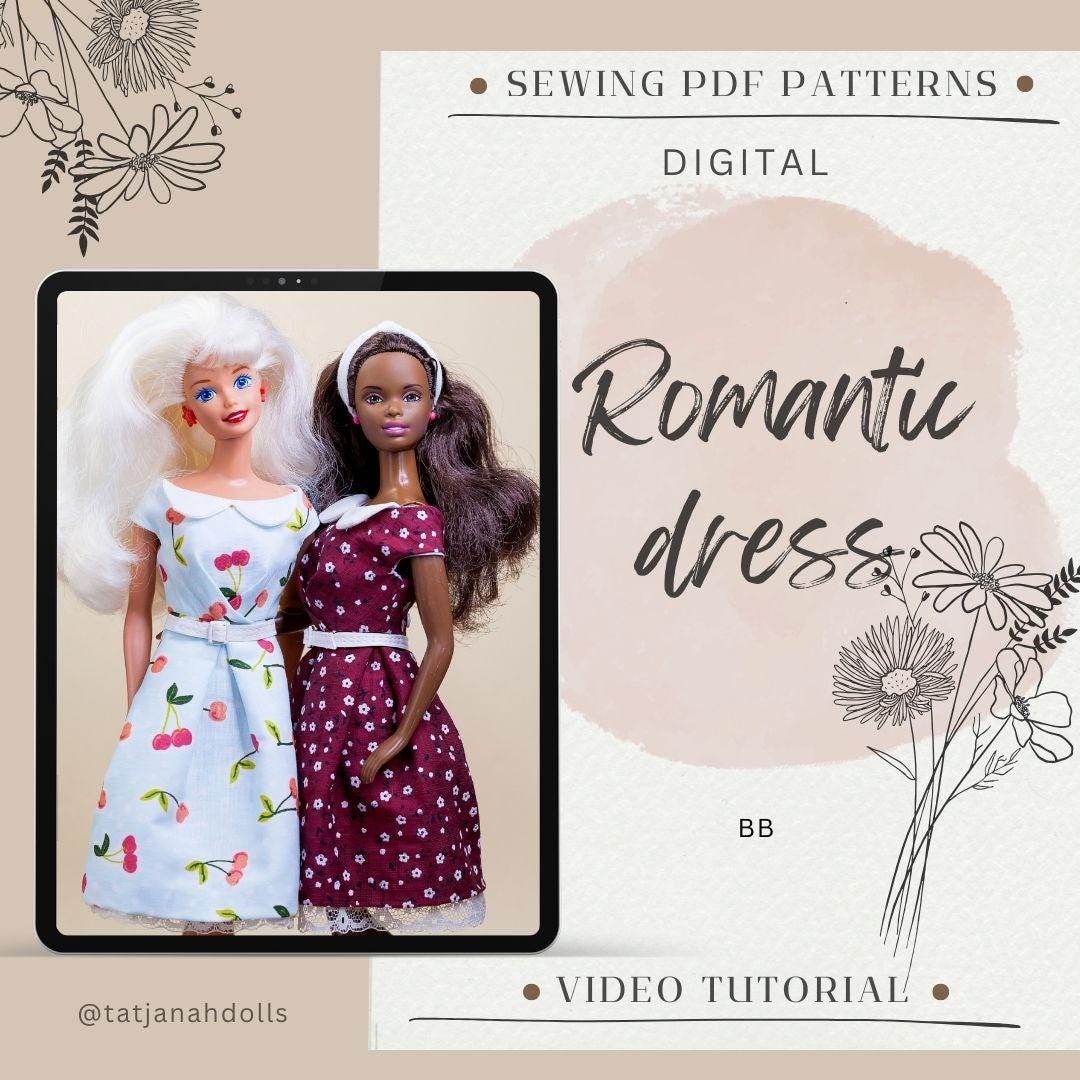PDF Digital Pattern Romantic dress for BB doll + video tutorial